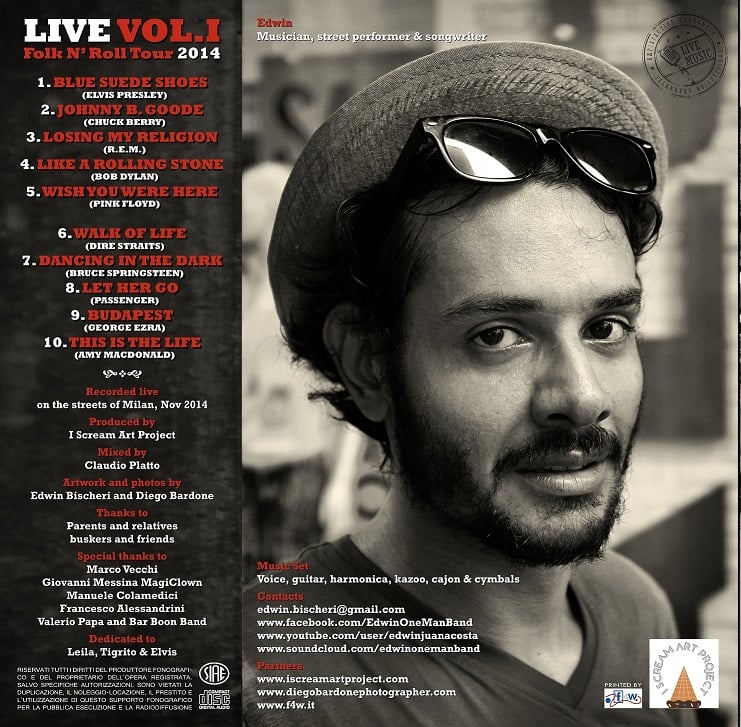The album, made of 10 songs, is like a street story divided in two parts, where the essence of my art and the energy of my performances on the road come out, combined with the soul of the street and its noises in the background!