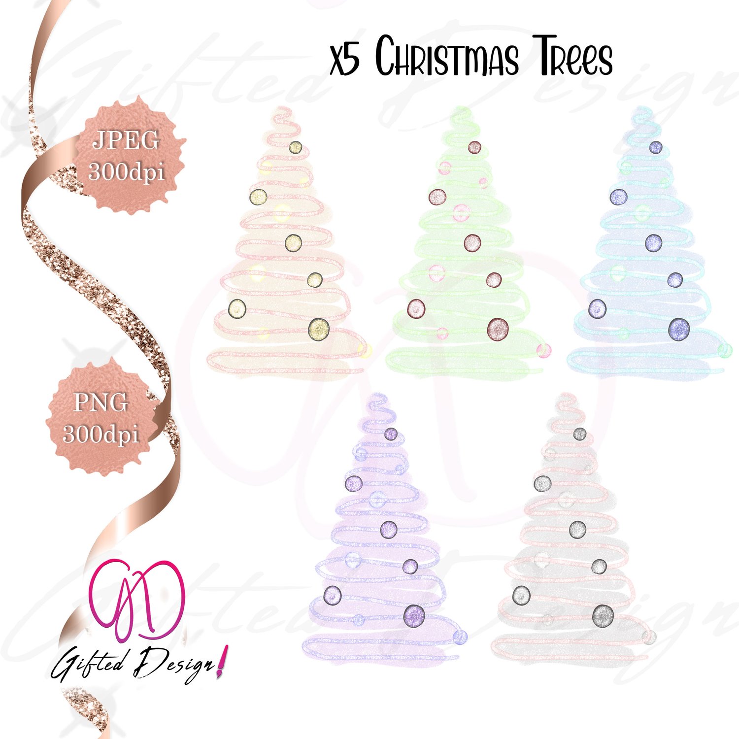 Hand-Drawn Glitter Christmas Tree Cliparts!