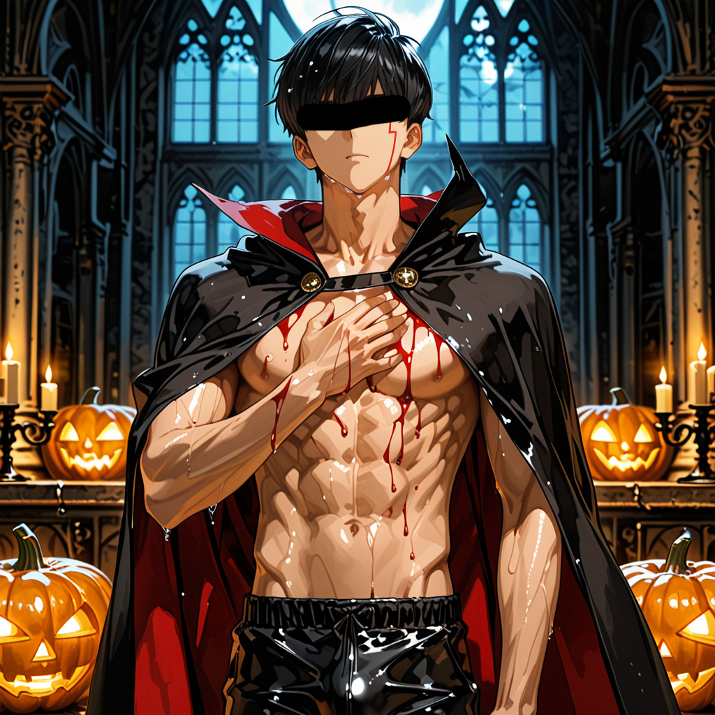 サウナで「ハロウィン」をテーマに、ヴァンパイアの男らしいキャラクターの魅力を思い切って表現しました。