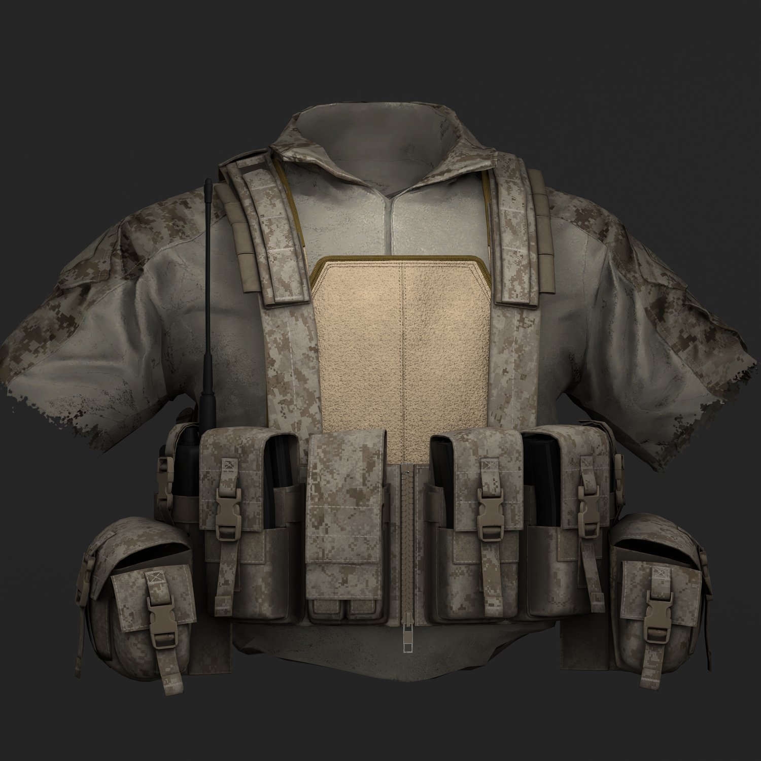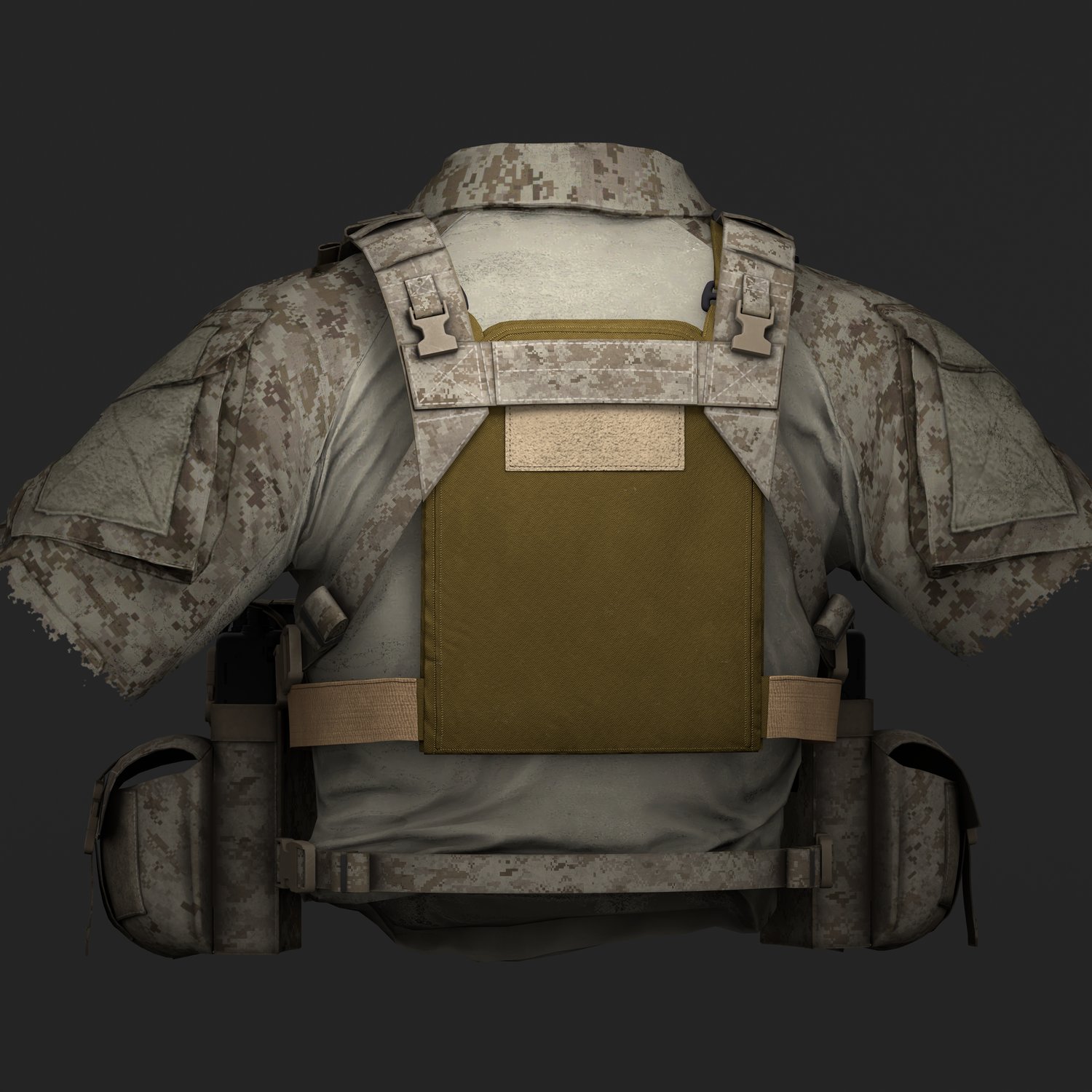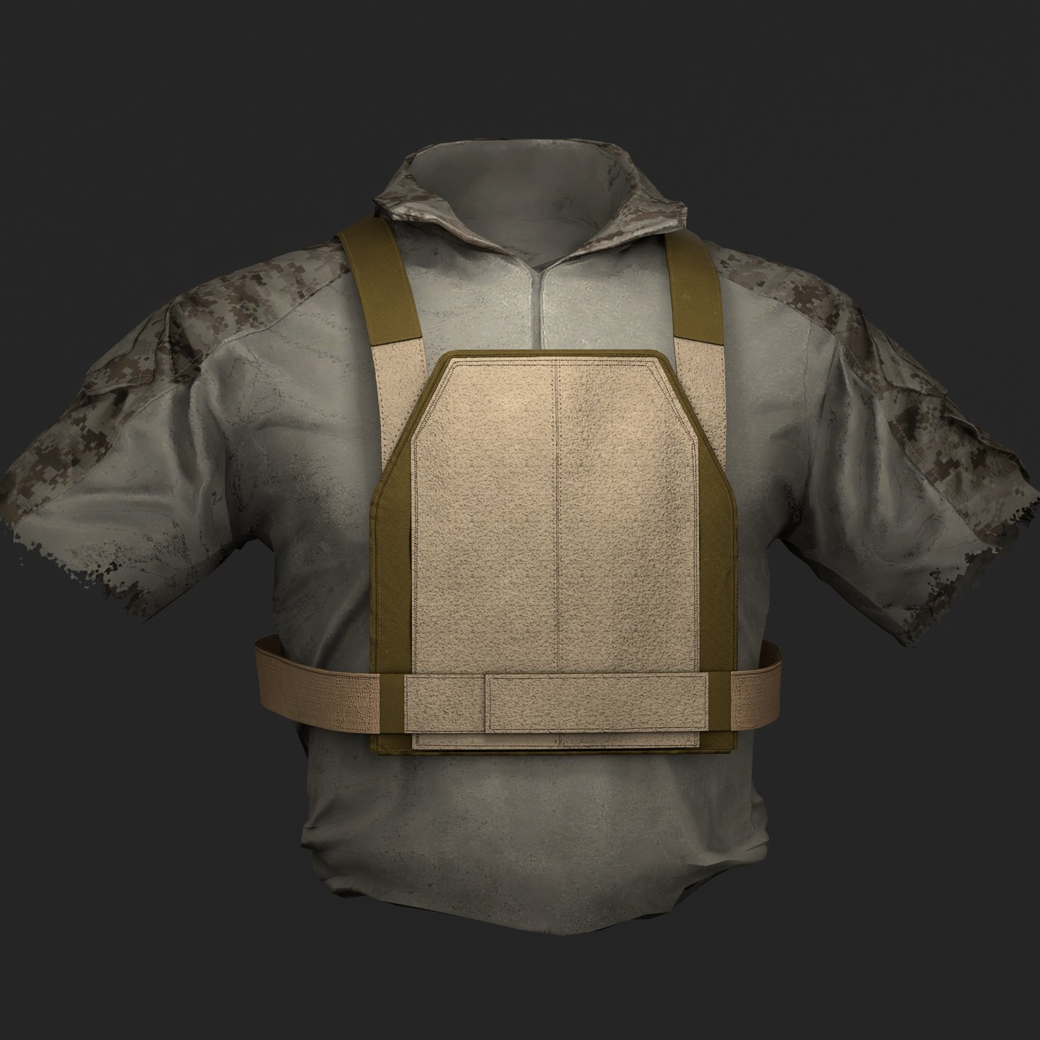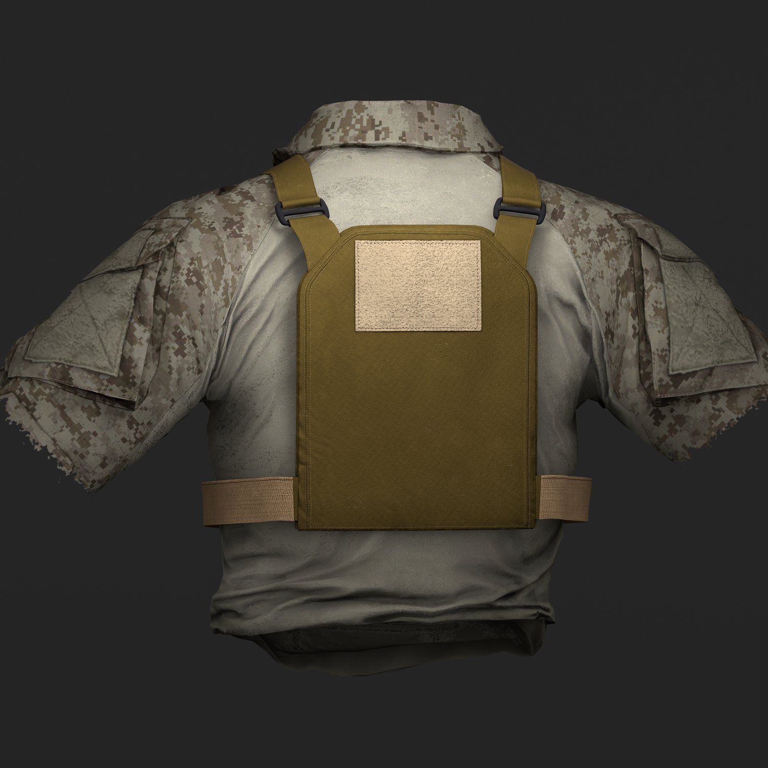 Accurately modeled 3D representation of the Diamondback Tactical Chicken Plate Carrier, built to real-world proportions and reference. Thanks to its low profile, the DBT Chicken Plate Carrier is ideal for use in PSD scenarios, as well as in combination with a chest rig worn over it.