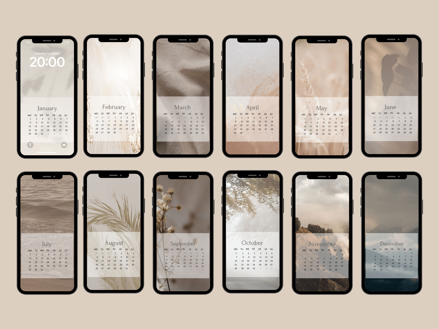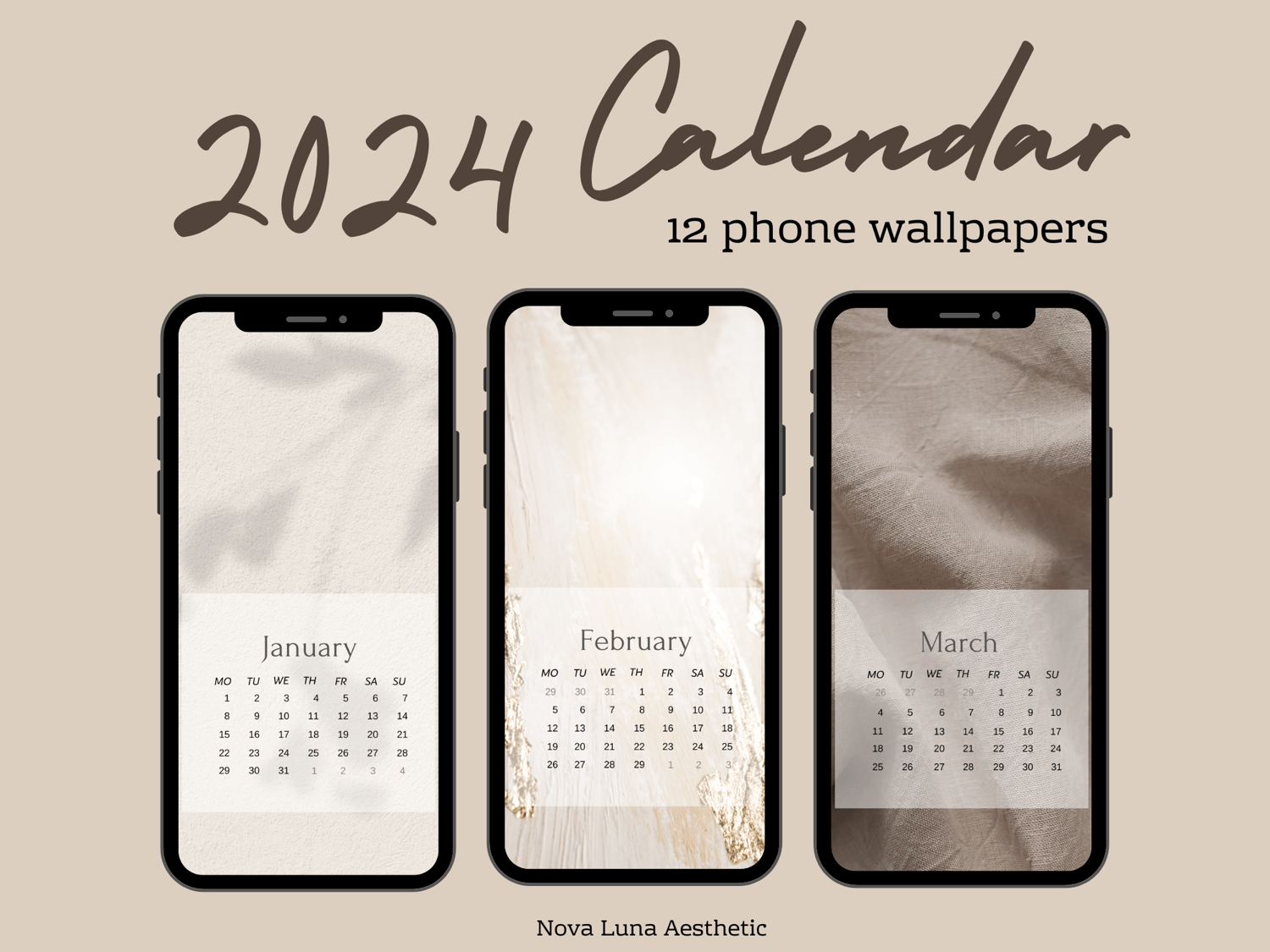 Each month offers a unique design combining minimalist aesthetics with functional calendars. Elevate your device's look with these high-quality digital downloads. Stay organized and stylish throughout the year!