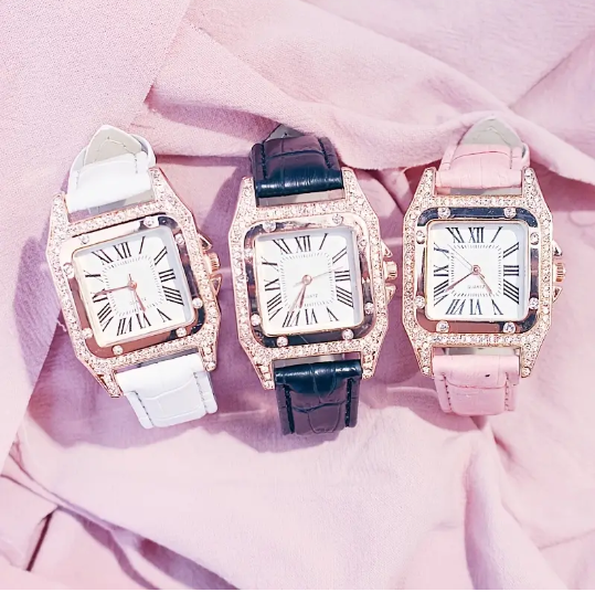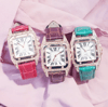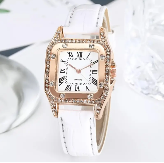 1pc Roman Numeral Rhinestone Square Quartz Watch