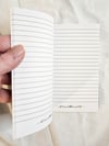 A 4" x 6" lined paperback journal featuring an otter design against a music-themed background.