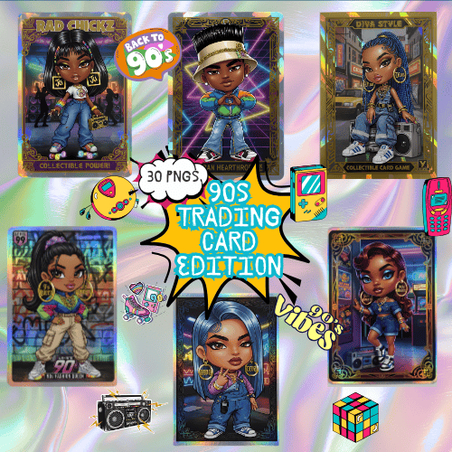 If you love 90s nostalgia, bold character art, and collectible-style designs, this pack delivers serious throwback vibes with modern polish. Whether you’re creating for fun or building digital products, these cards bring retro personality, style, and flair to any project.