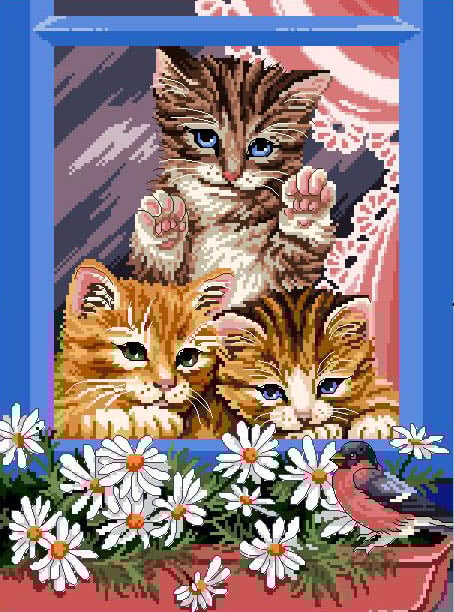 Kittens by the Window - Cross Stitch Downloadable PDF Pattern