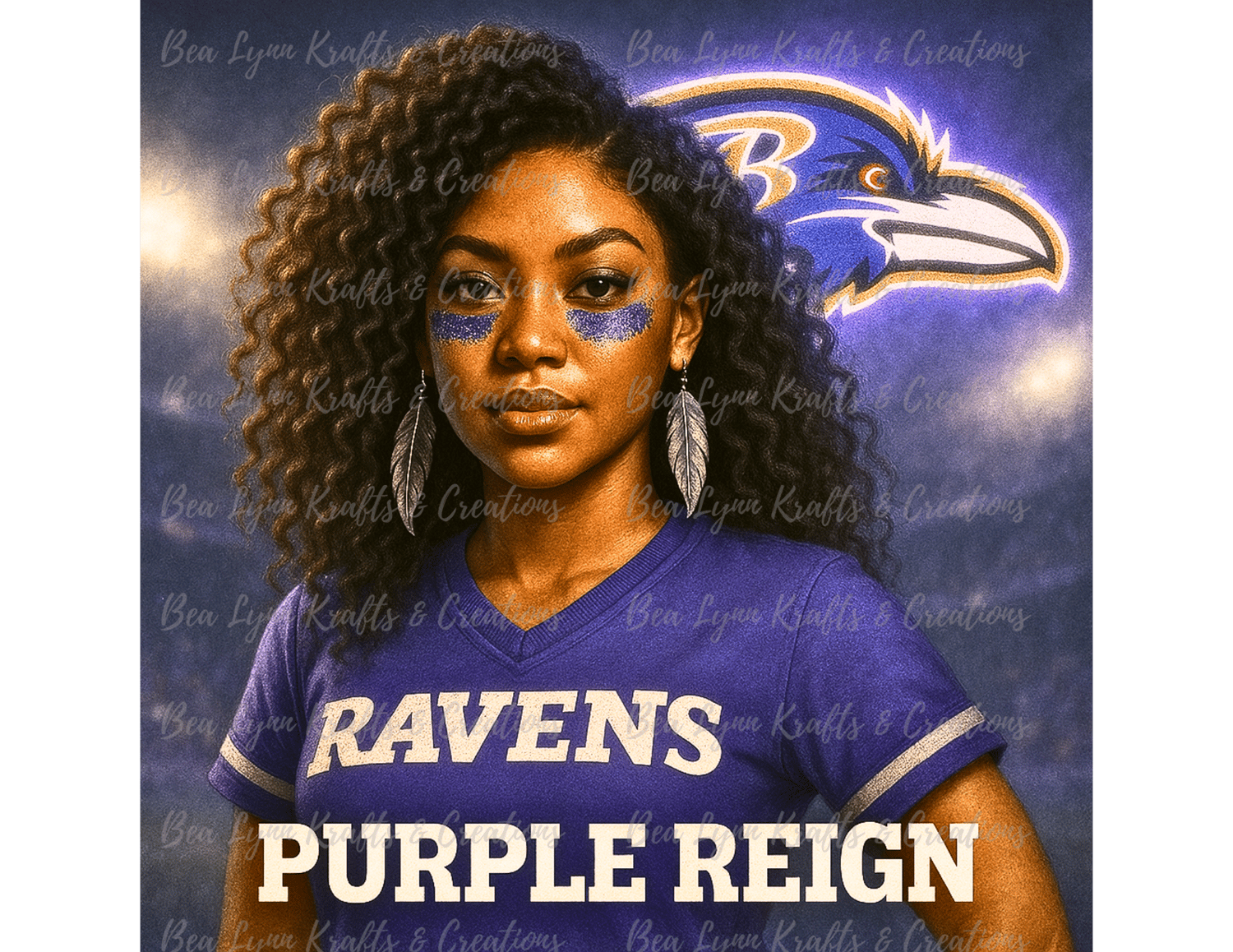 Baltimore Ravens Fan PNG – “PURPLE REIGN” Transparent Sublimation Design for Shirts, Mugs, Wall Art, Posters & Game Day Crafting