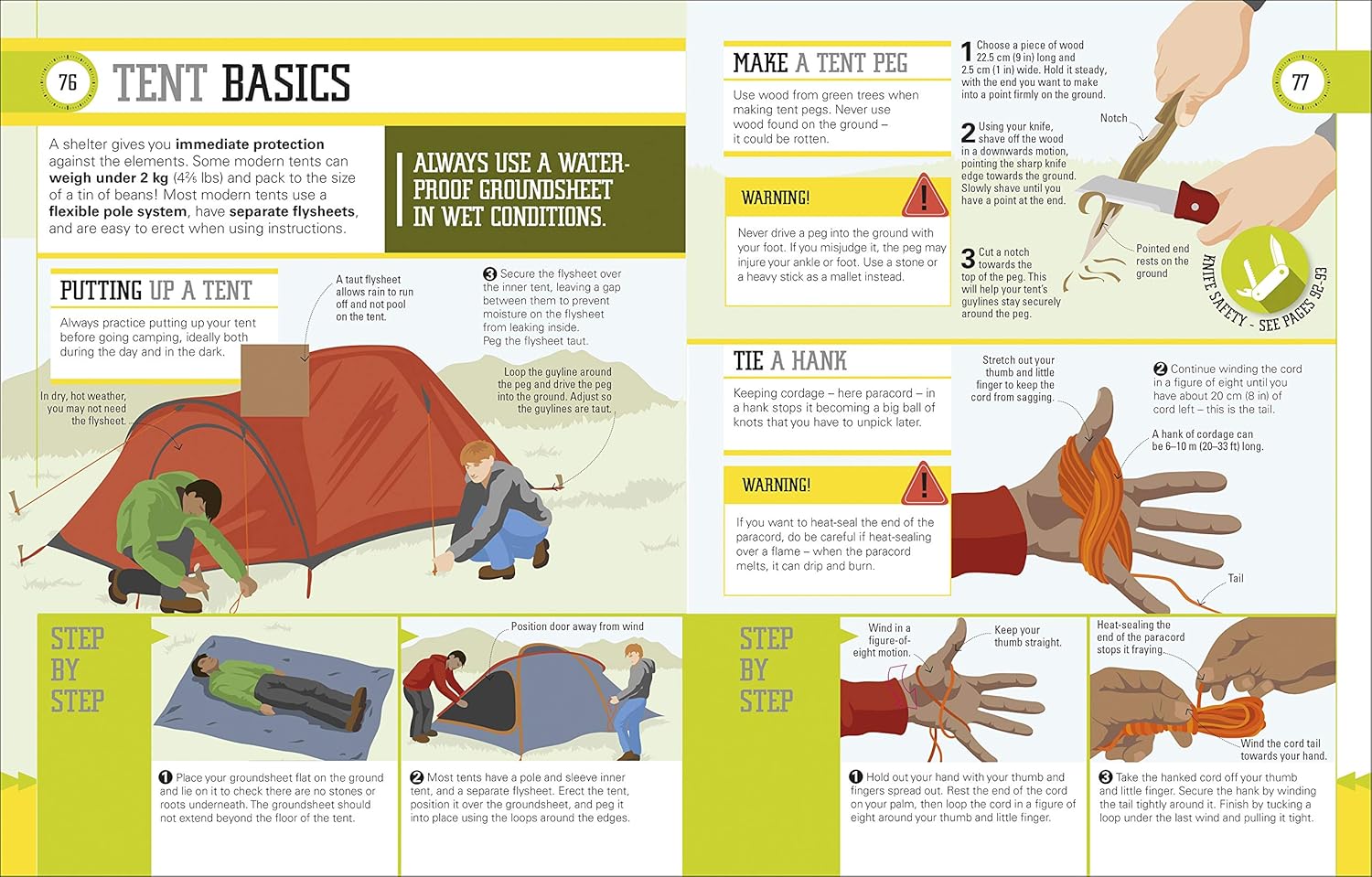 Learn the basics - from picking the best tent for your expedition to knowing how to pitch it - with clear step-by-step illustrations. Find out why not to camp beneath a tree, how to peg out your tent, and when to slacken the guy lines. Once you're safely under canvas, discover how to forage for food, light a fire with flints and tinder, and cook up delicious grub.