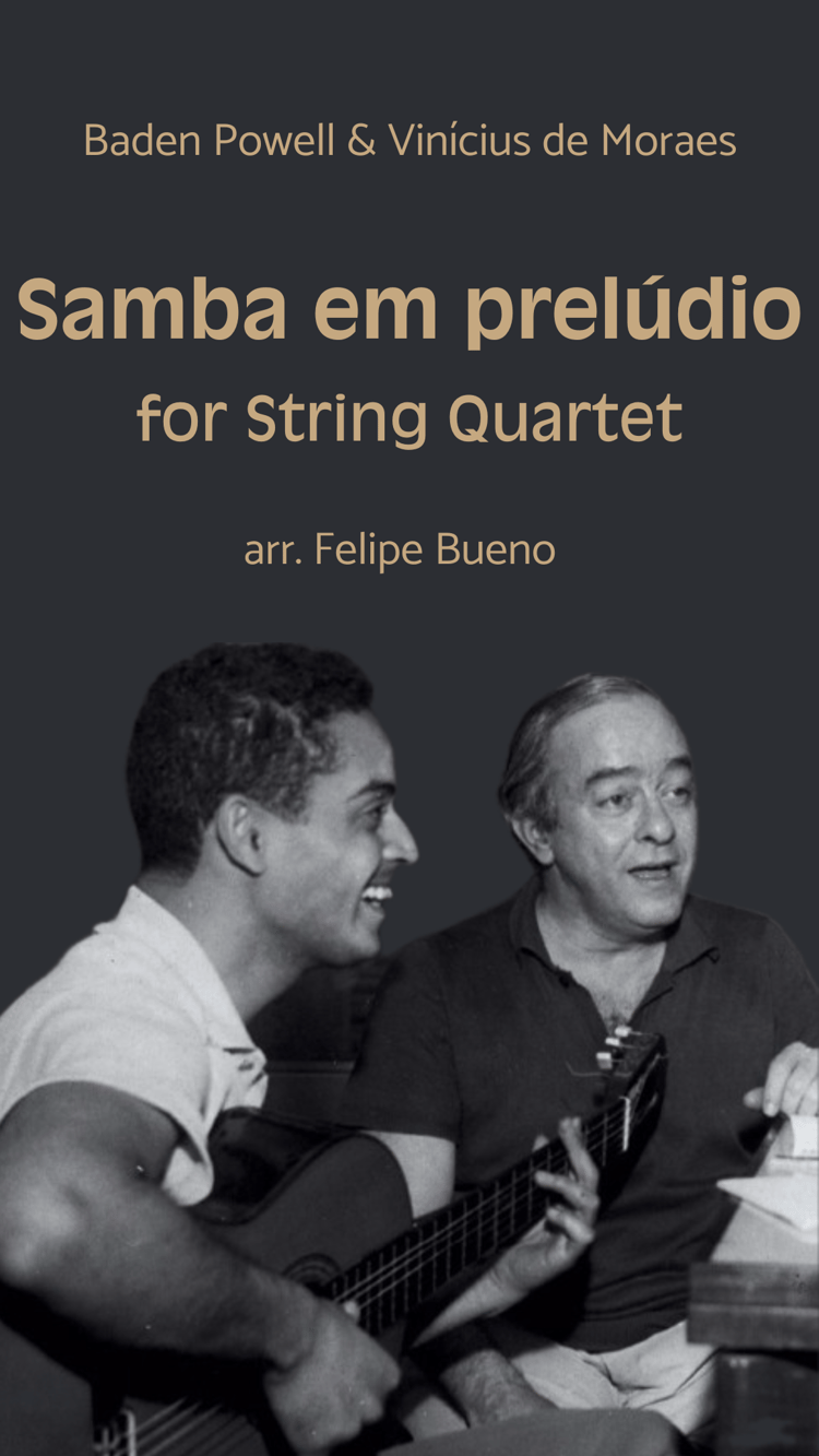 Este é um arranjo do qual me orgulho muito. Foi o primeiro que escrevi para quarteto e, com o tempo, foi refinado pela experiência de suas apresentações. Foi tocado por muitos conjuntos no Brasil e na Europa. Sinta-se à vontade para experimentar, como com um pandeiro. A música brasileira é para ser celebrada. <3
