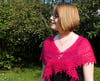 Calypso has a unique teardrop shape achieved by working from the top down with 6 stitches increased every other row. The body of the shawl is in garter stitch with a double yarn-over lace border, finished with a beaded picot cast off. Pattern has charts and written instructions.