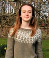 The intricate stonework of Oxford’s spires reflected in water inspired this easy to knit colourwork yoke.