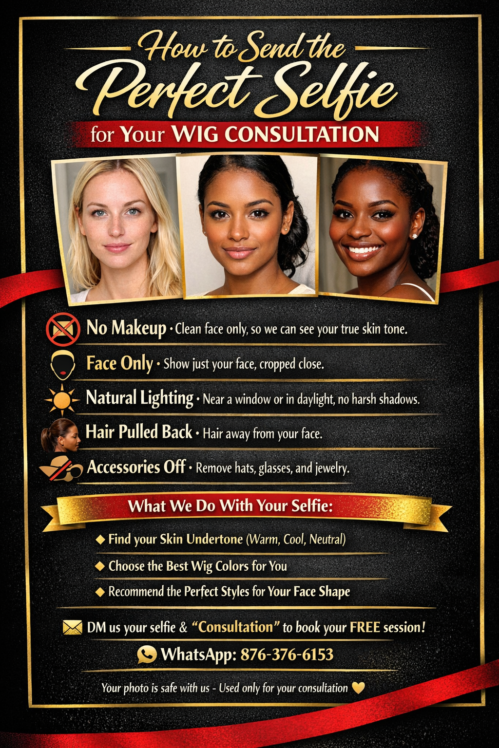 Choosing the right wig shouldn’t feel overwhelming. This personalized 1-on-1 Virtual Wig Consultation is designed to help you confidently select a wig that enhances your natural beauty and complements your features.