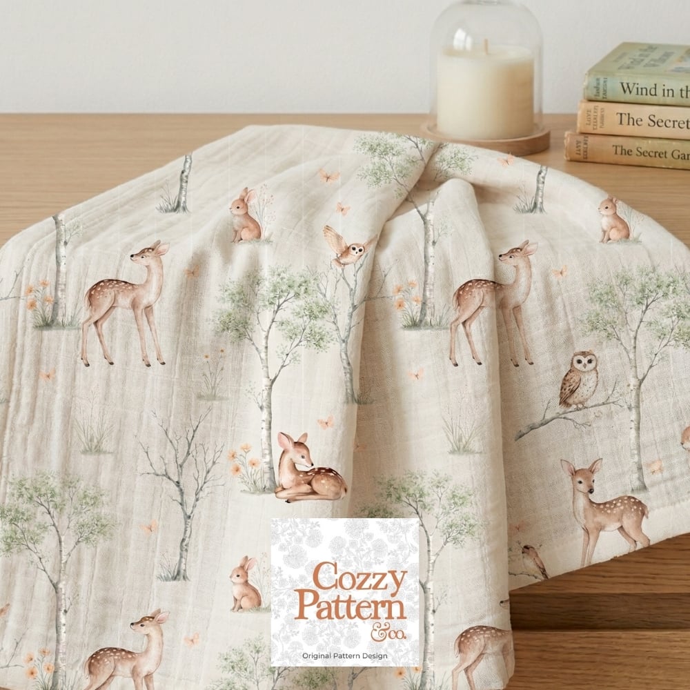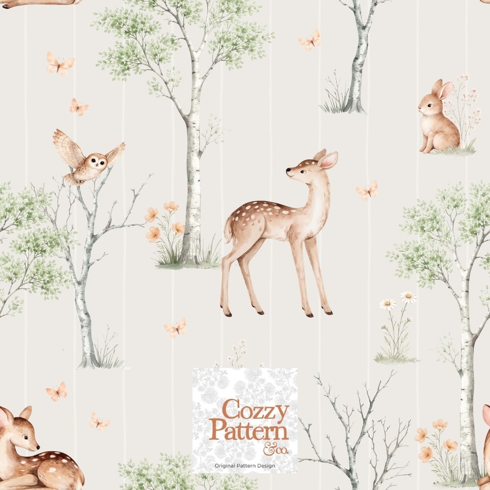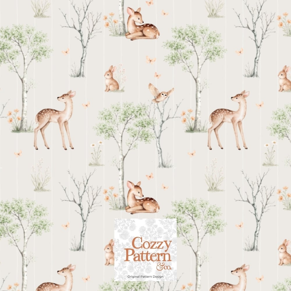Woodland Baby Deer Seamless Pattern P2D– Soft Forest Animals Nursery Design| Commercial License Included
