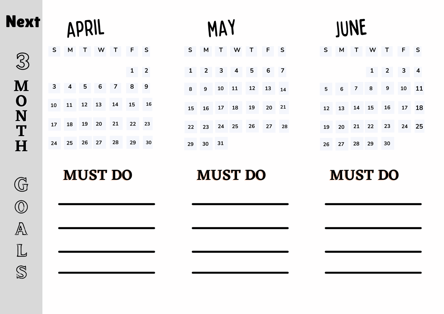 I specifically add four lines in Must Do Section as 4 lines means 4 weeks and 1 important task in each week