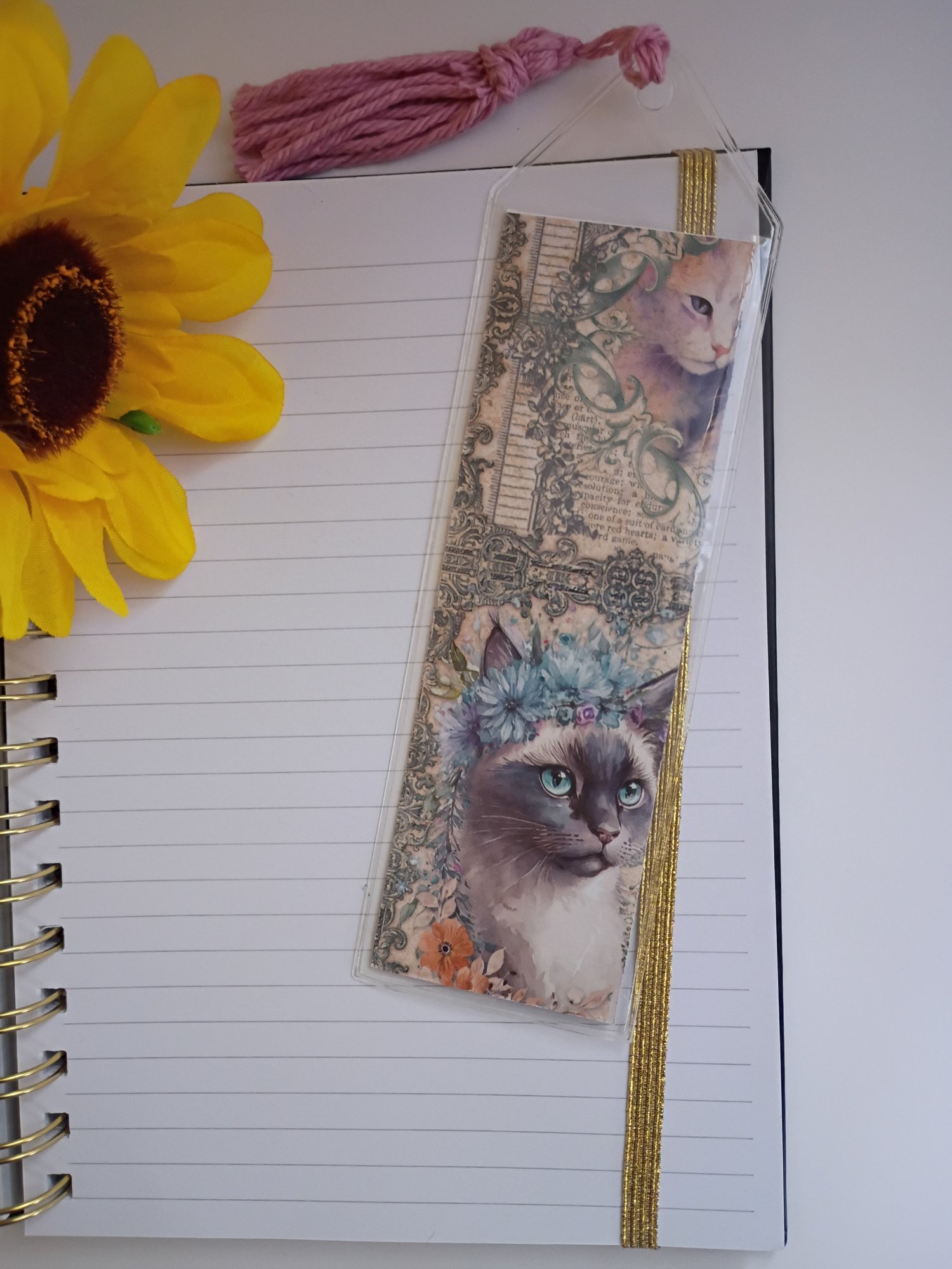 These bookmarks have a different design and pattern on the front and back. The cat design is on the front. They are made from upcycled scrapbook paper and attached to 170 lb. weight cardstock paper for extra stability and firmness.