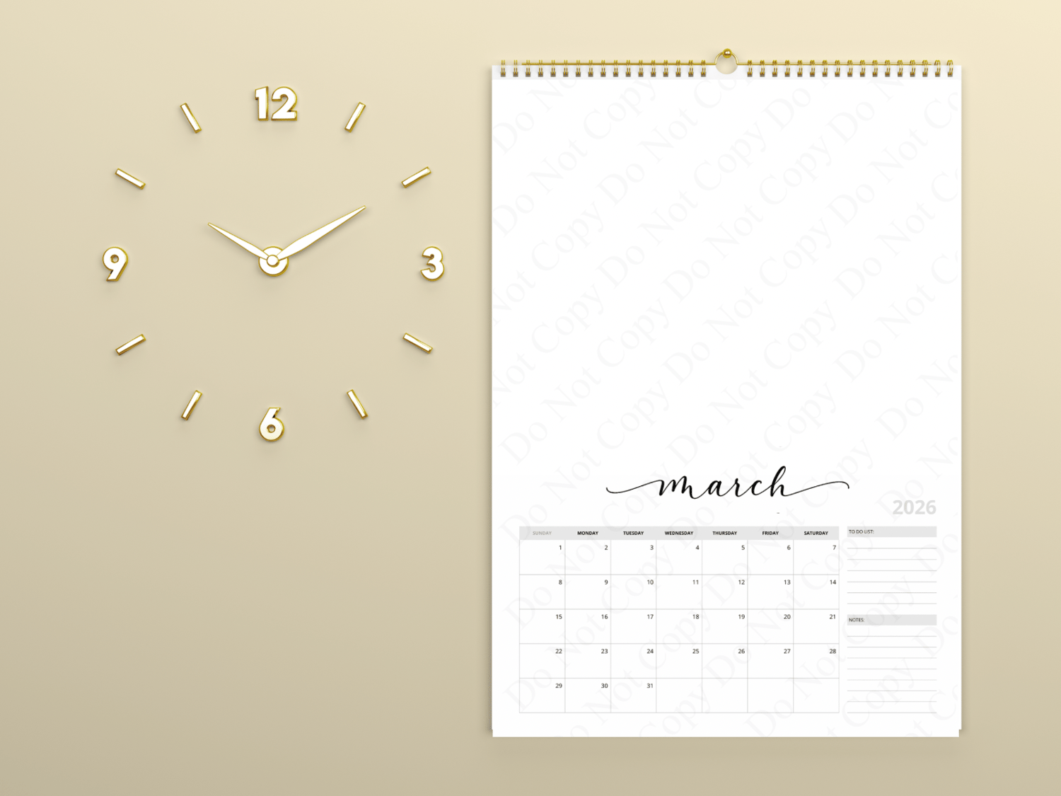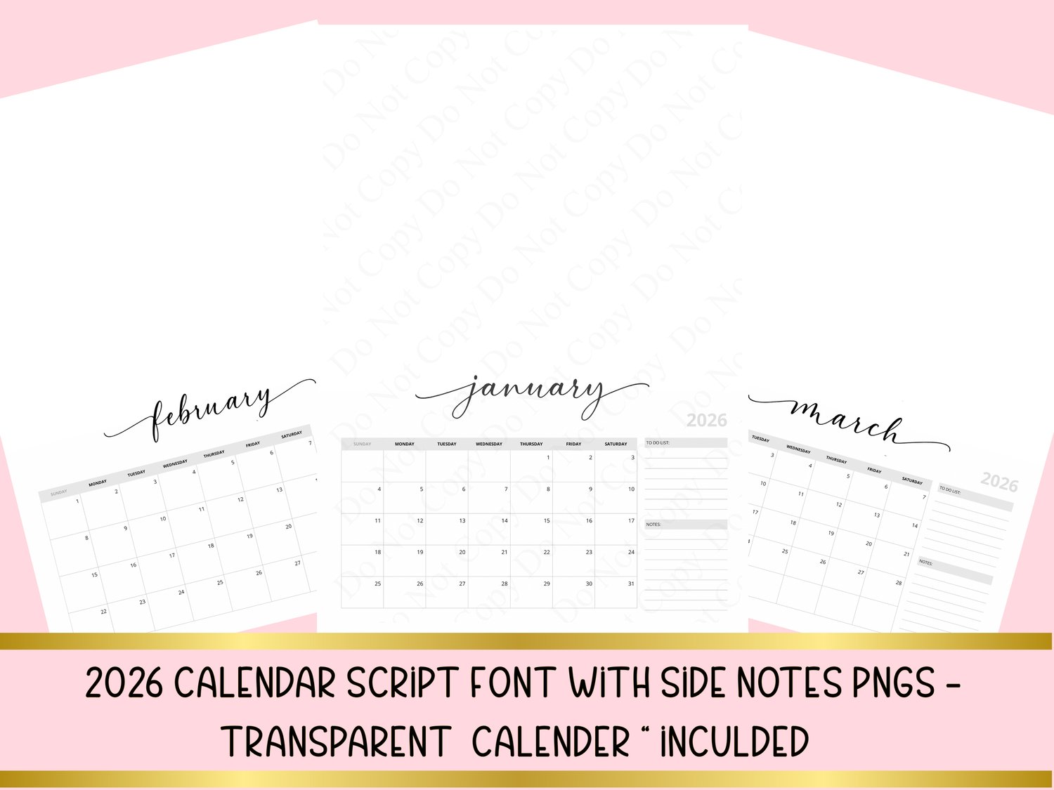 2026 Calendar – Script Font with Side Notes (Calendar PNG Included)