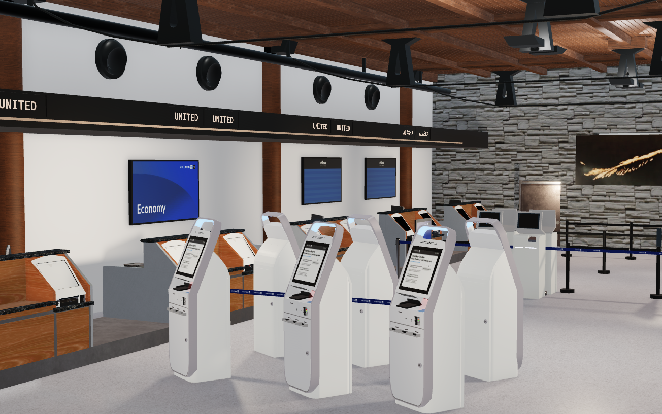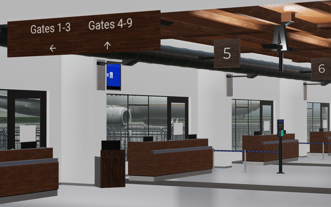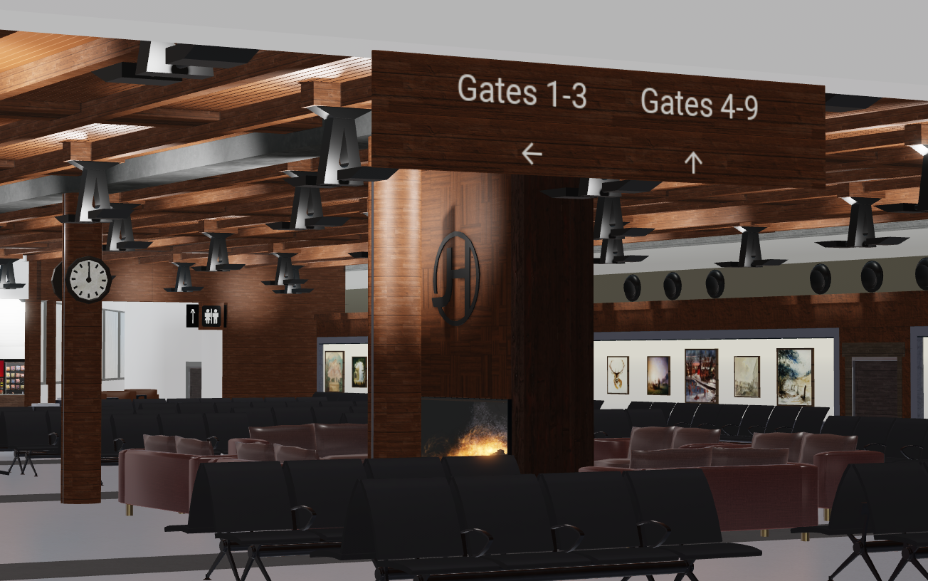 -High-quality interior including: check-in area, gate areas, restaurants, security, airport stores.
