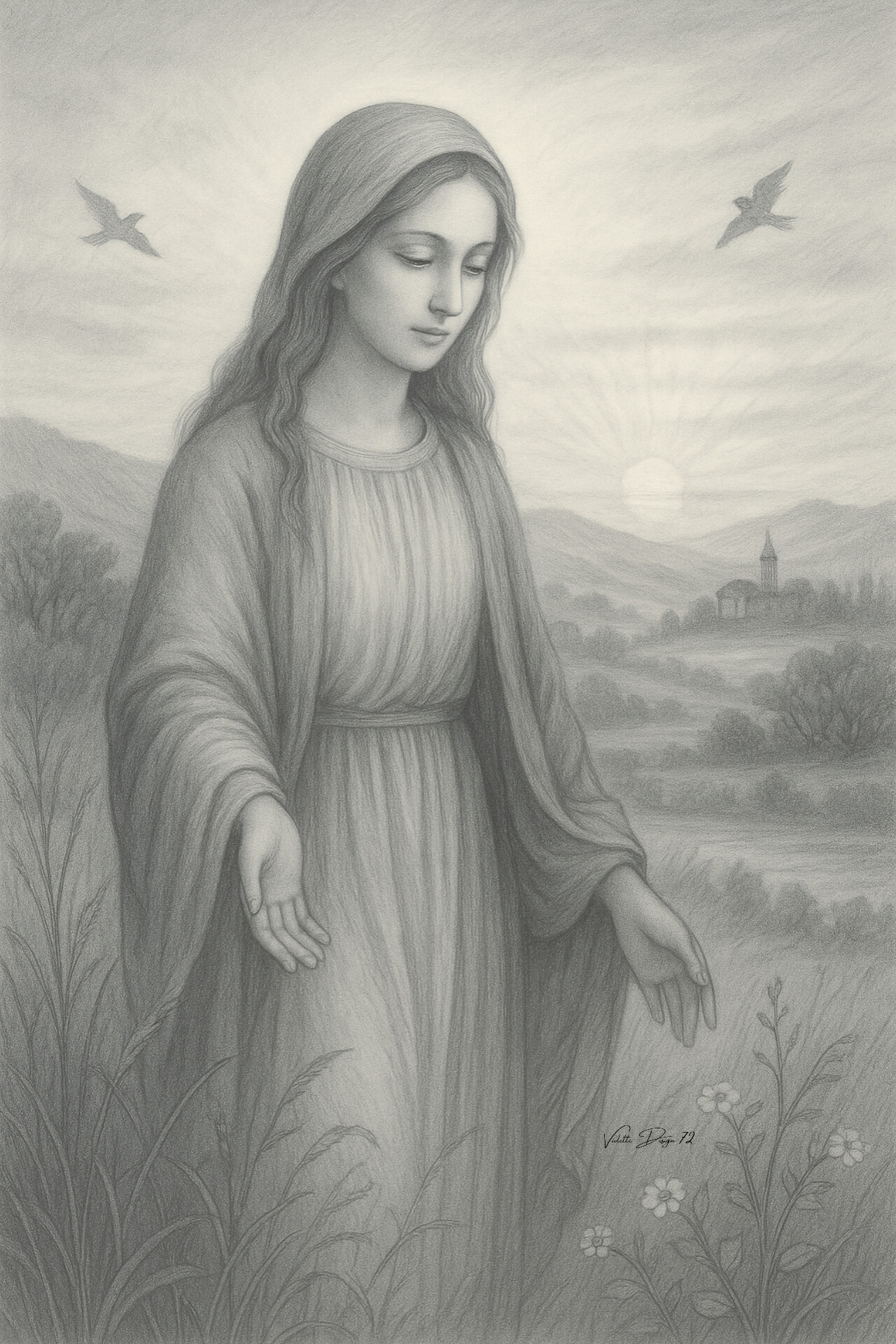 The Madonna manifests herself as a silent presence in nature, in a loving dialogue between heaven and earth.