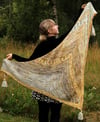 The sample is worked in Fru Valborg Merino Swirl (80 % merino, 20 % nylon, 365 m/100 g) in colorways New dawn (C1), Woodstock (C2) and Thrift find (C3).