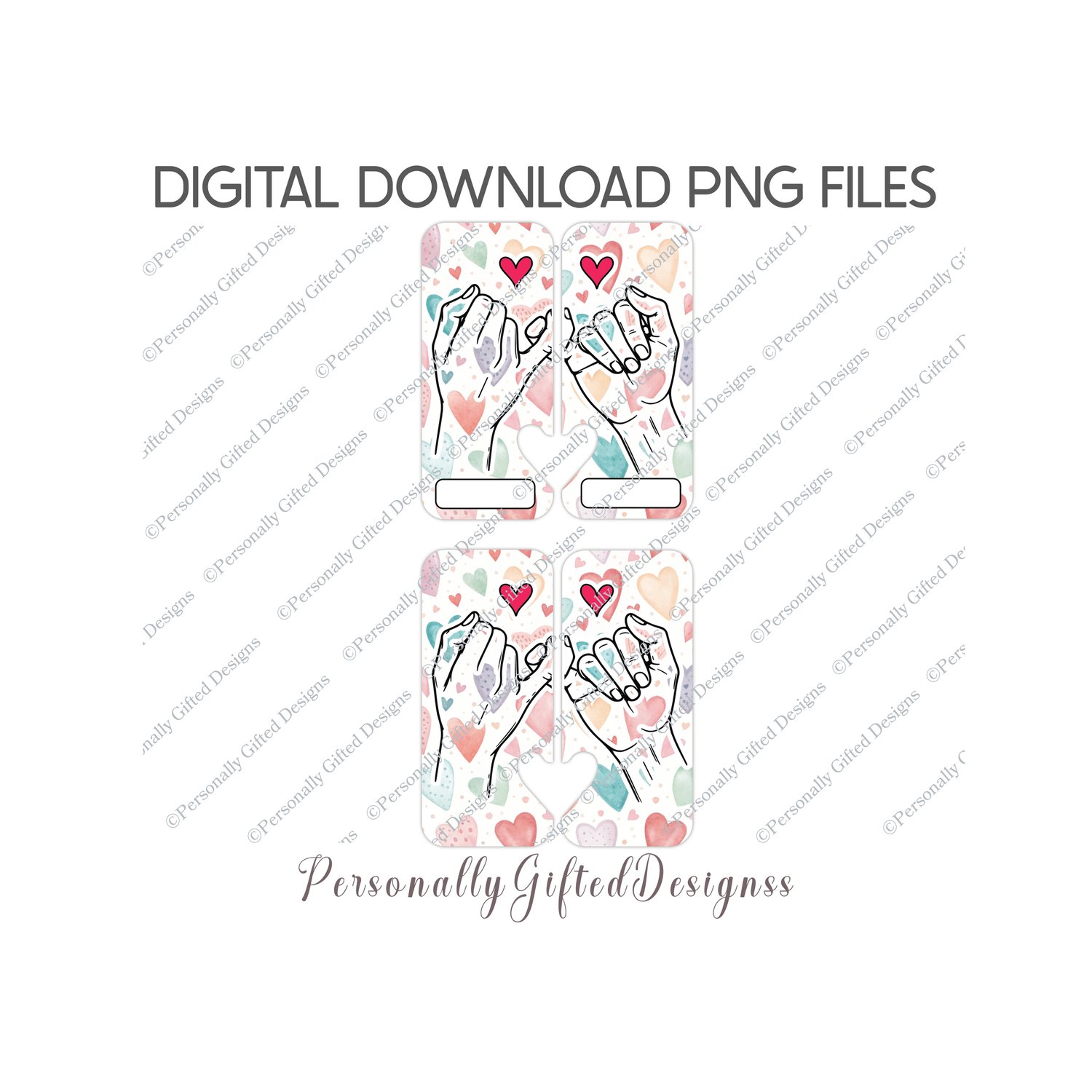 Valentine's Hands Dual Fob Keyring Design Digital Download, Valentine's Day Keyring PNG, Dual Fob Keyring Hands Design With And Without The Name Banner, Couples Valentine's Day Gift Design (Woodform)