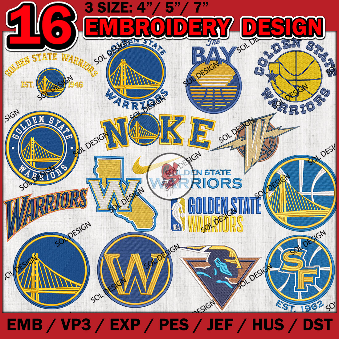 16 Golden State Warriors Embroidery Designs Bundle, NBA Embroidery Designs, NBA Golden State Warriors Machine embroidery Design, NBA Golden State Warriors Bundle, Digital Download