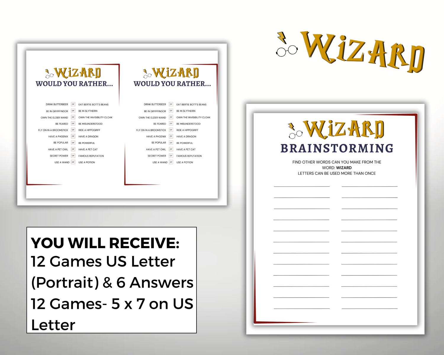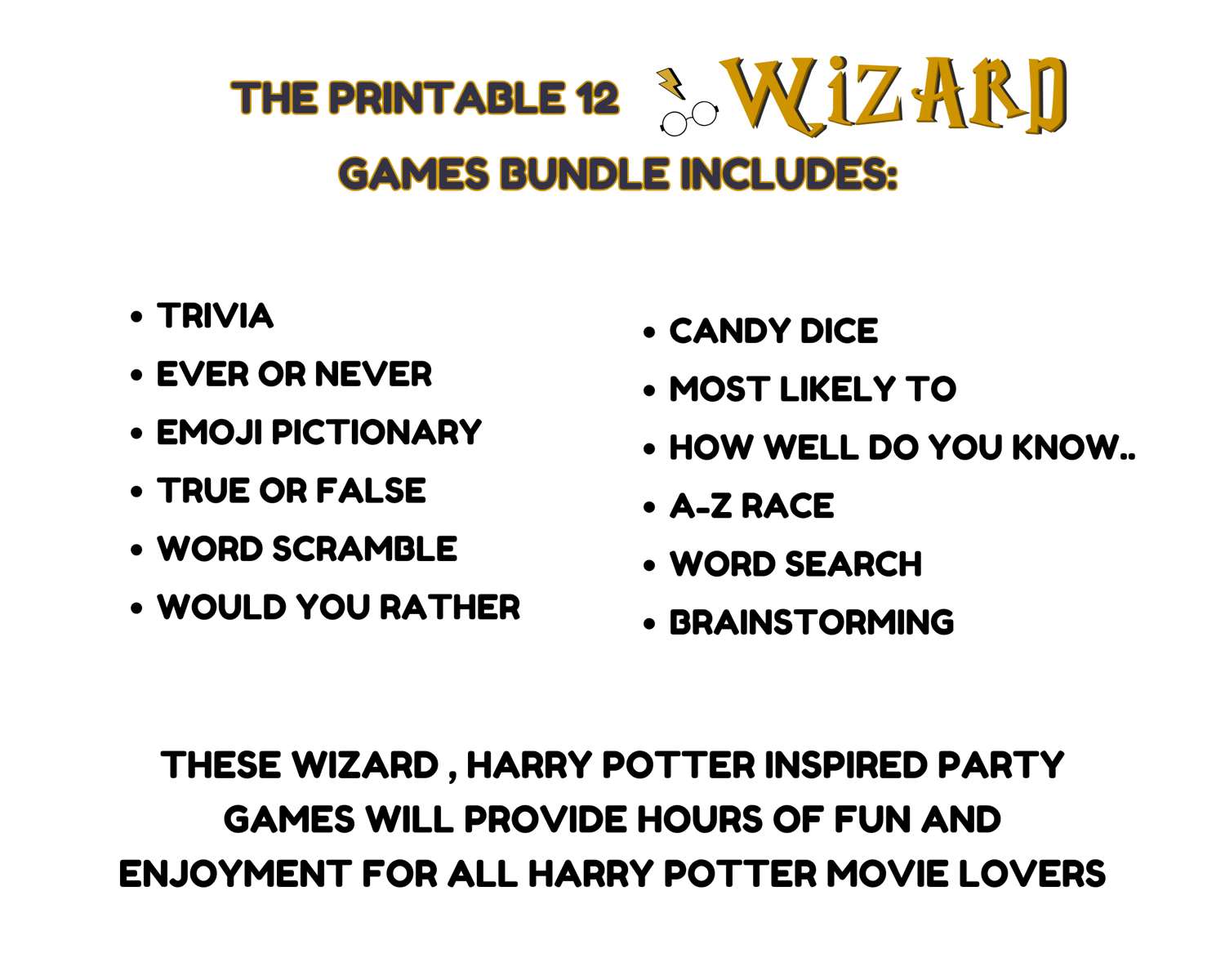Wizard 12 Games bundle, HP Themed Birthday Party Printable, Potter Magical Wizardry Inspired