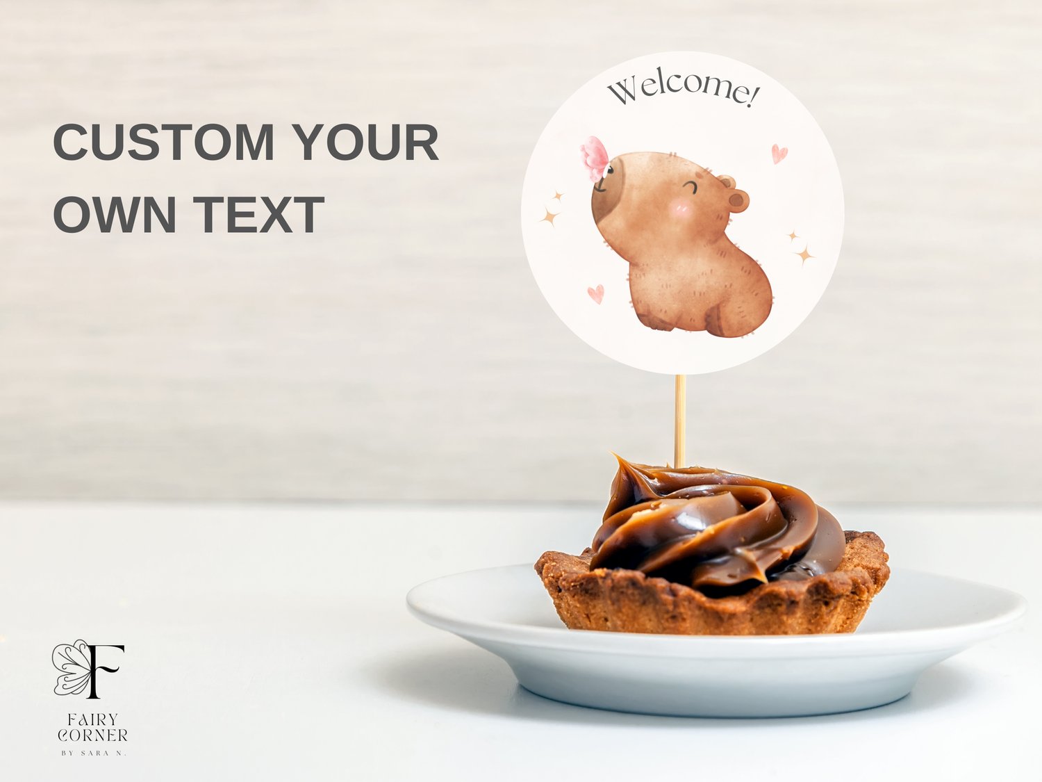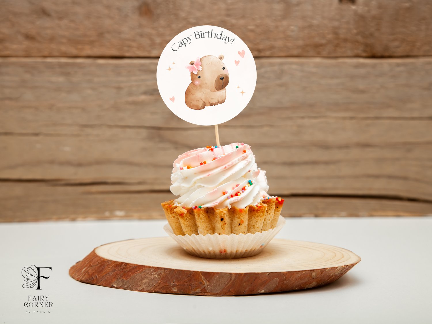 CAPYBARA CUPCAKE TOPPER CUTE PINK TOPPERS BIRTHDAY TEMPLATE