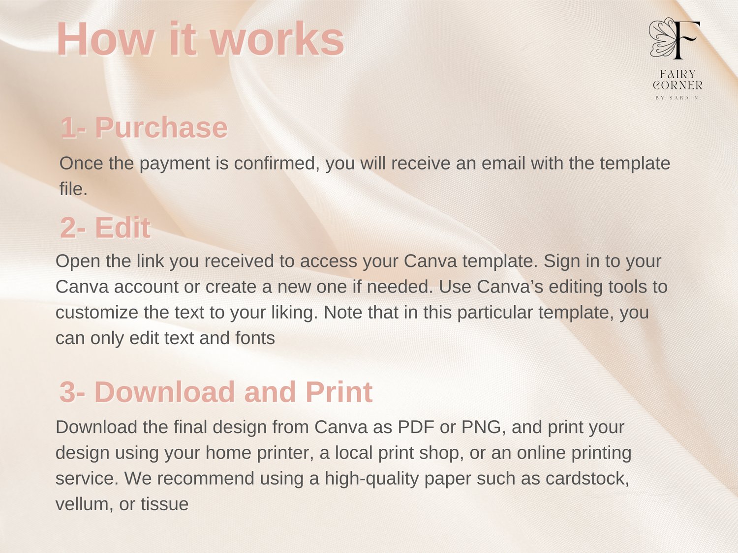 ✨Edit: Open the link you received to access your Canva template. Sign in to your Canva account or create a new one if needed. Use Canvas editing tools to customize the text to your liking. NOTE that in this particular template, you can only edit text and fonts