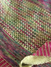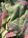 To make this you will need three 100 gm balls of 4 ply (each ball = 410 metres). I used Wool is the Answer yarns with their one of a kind mixed colours as the main shade, although “Cherry Blossom Skies” would work just as well, contrasted with “Artichoke” and “Magenta 8“. (www.woolistheanswer.co.uk).