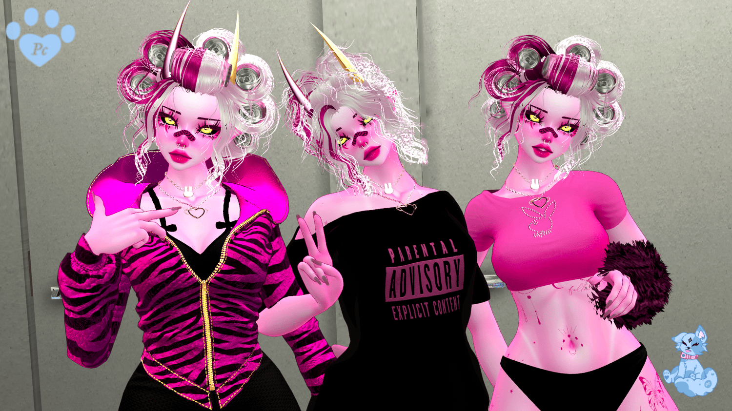 Head,Body,shirt and shorts,Horns,RollerHair,Messybun
