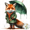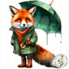 Cute Fox Wearing Raincoat. 2 files, 1 with and 1 without background.