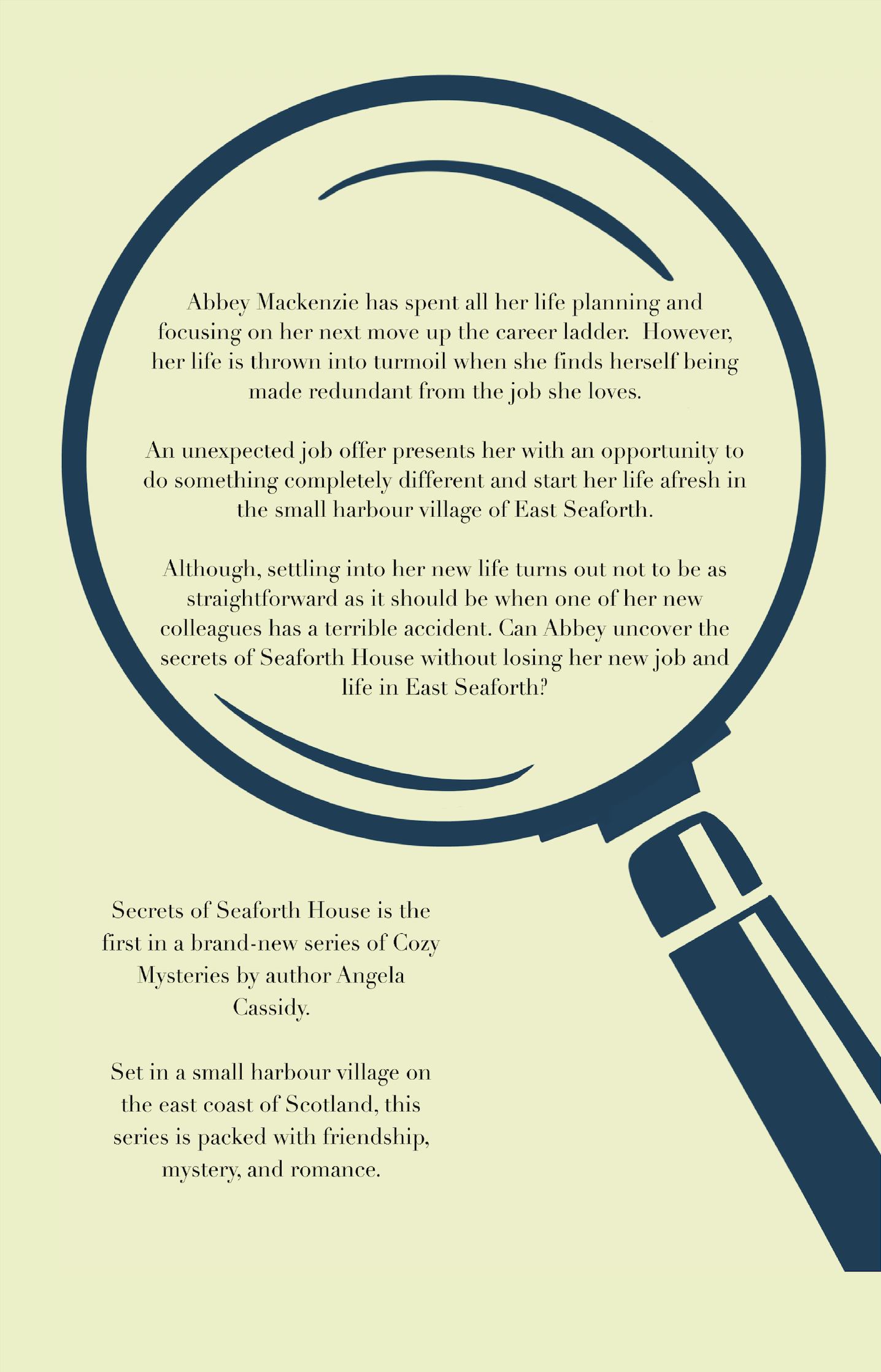 Secrets of Seaforth House is the first in a brand-new series of cozy mysteries by author Angela Cassidy. Set in a small harbour village on the east coast of Scotland, this series is packed with friendship, mystery, and romance.