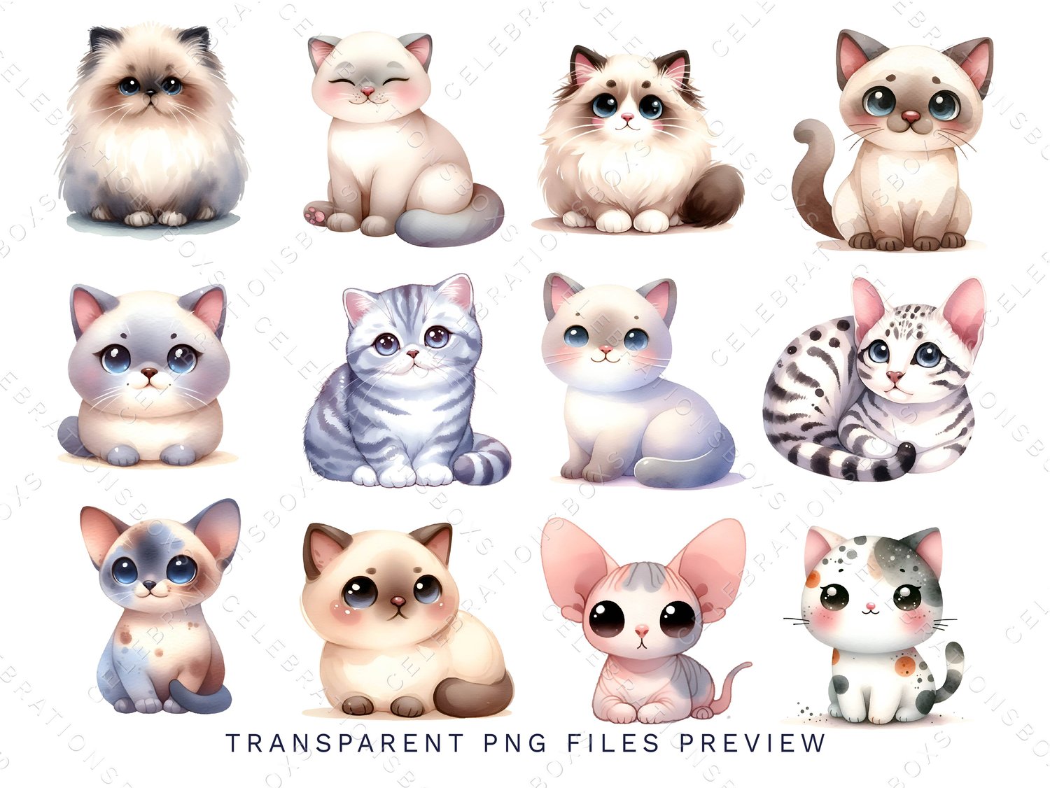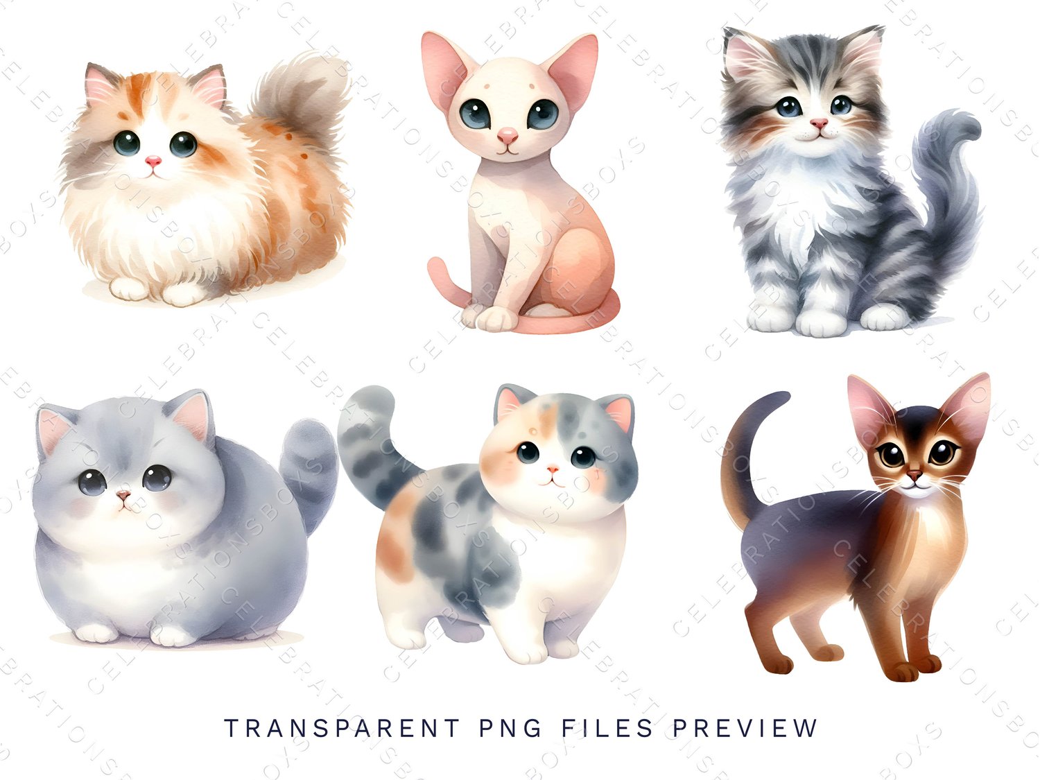 Cute Cats Clipart Bundle, Cute Kittens Bundle, Cat Breeds Clipart, Kittens Clipart, Cat Graphics, Watercolor Cats Clipart, Card Making, Scrapbooking