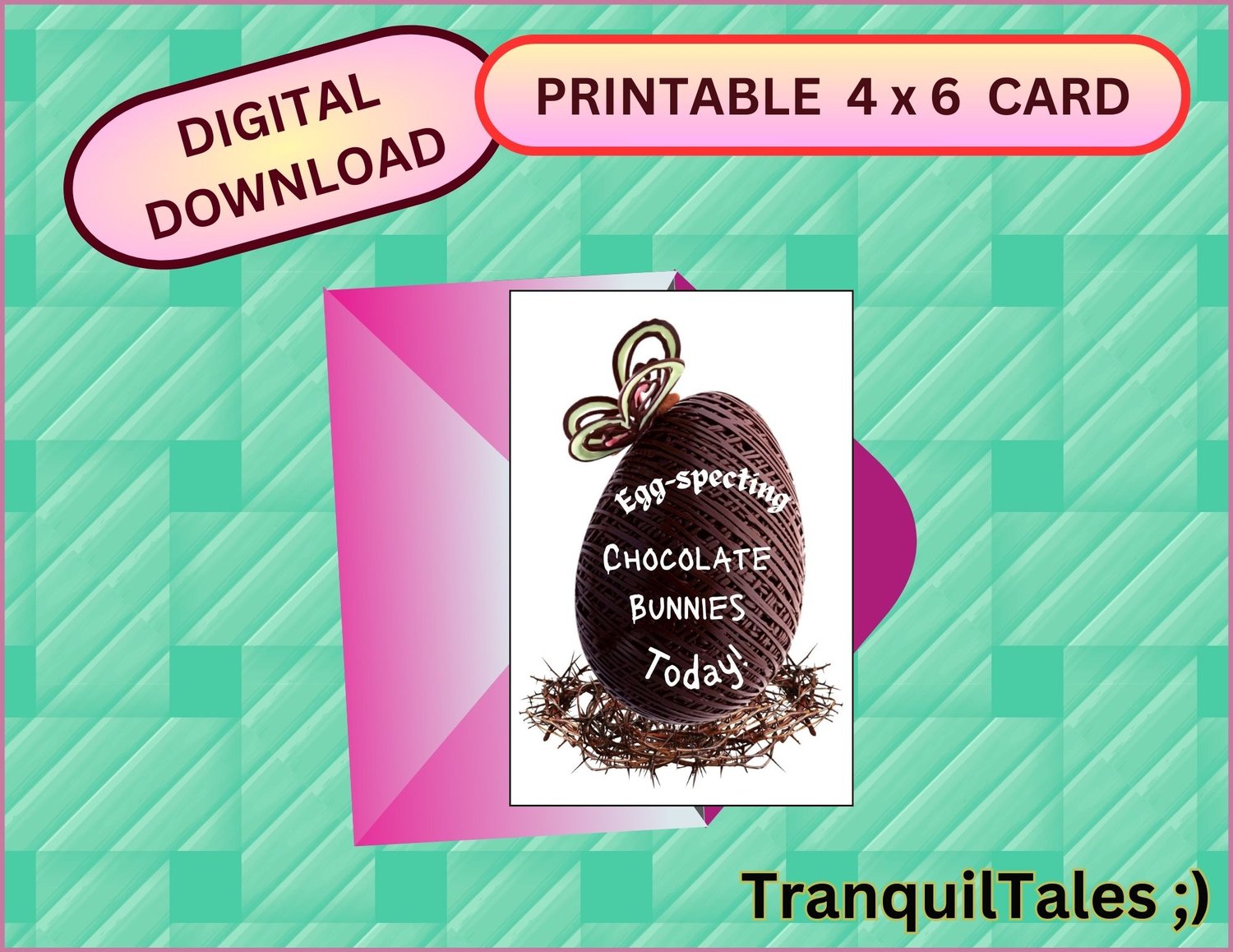 Egg-specting CHOCOLATE BUNNIES Today! Card - 4" x 6" inches - Easter card - PDF File