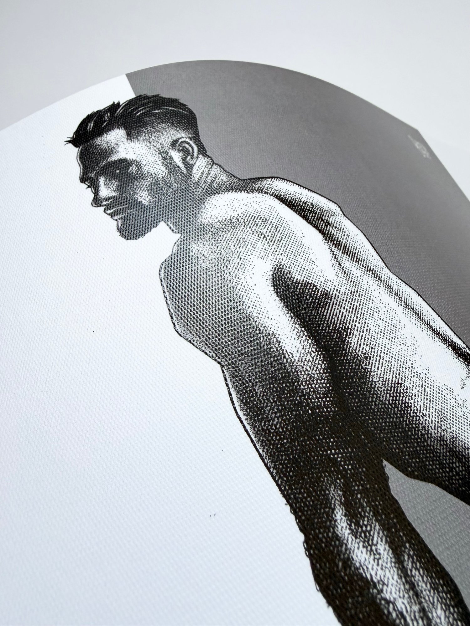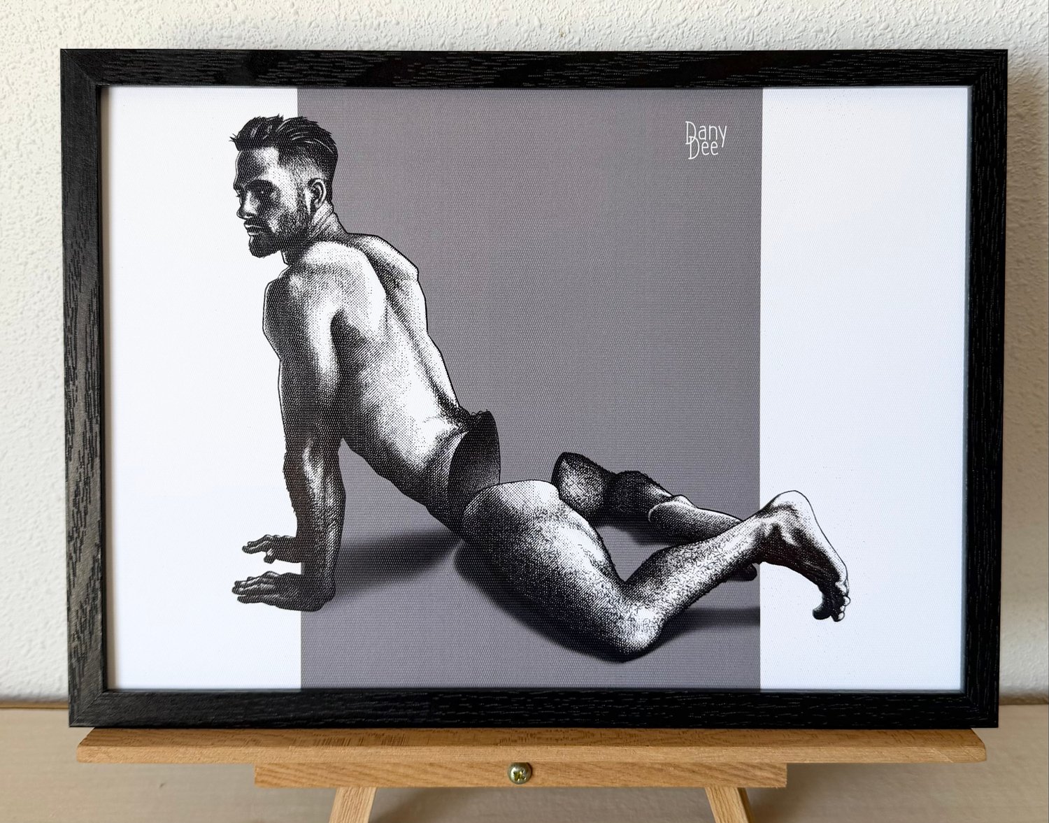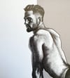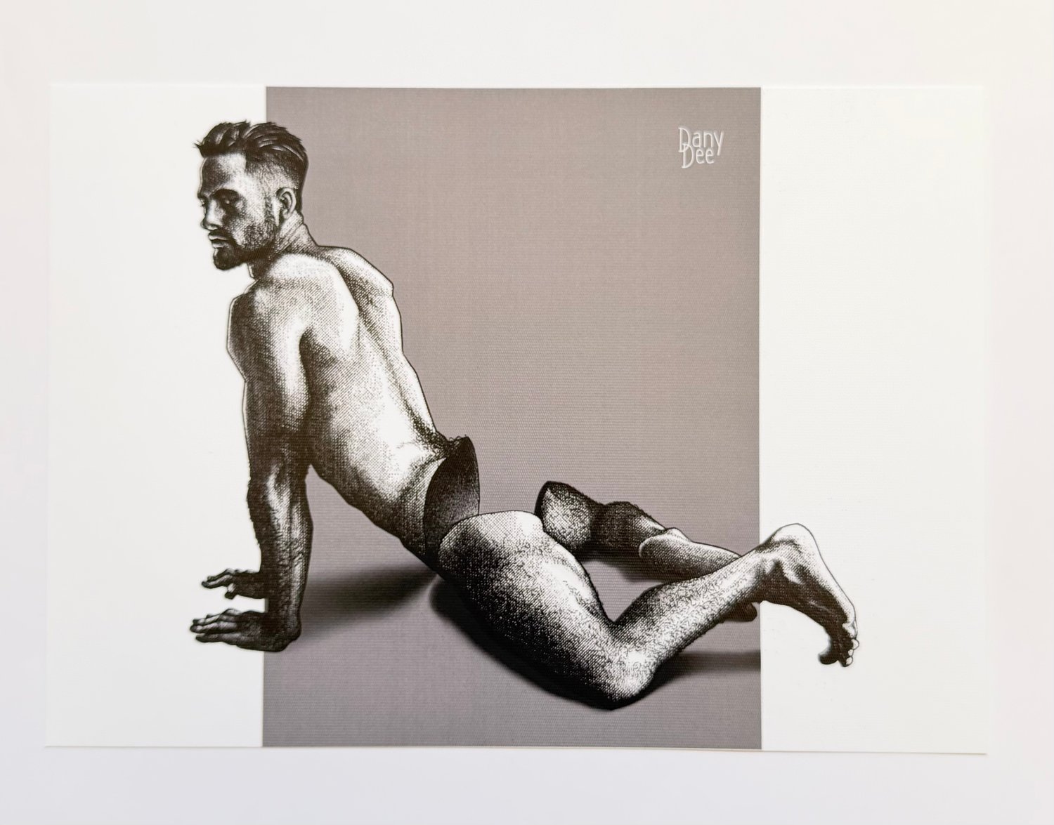 “Hollow No. 28” is a hand-drawn, monochromatic A4 art print from the Hollow series — a conceptual queer art piece exploring censorship through the male nude, where a lean, muscular man poses on all fours, the hollow concealed beneath the body itself.