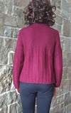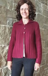 This 8ply/DK ladies jacket has set in sleeves, side shaping and a collar. The body is worked in a four row cable pattern and the bodice is rib.