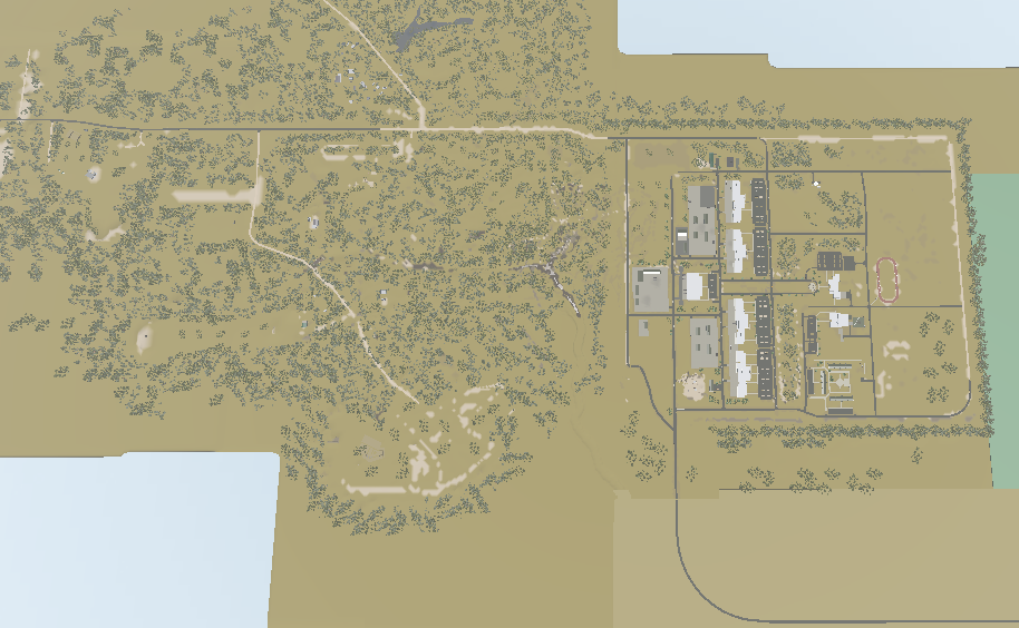 This maps main base area is 1:1, with several realistic buildings on the actual training area including kill houses, vehicle ranges, sniper range, and small low poly airfield for launching operations out of. It includes: