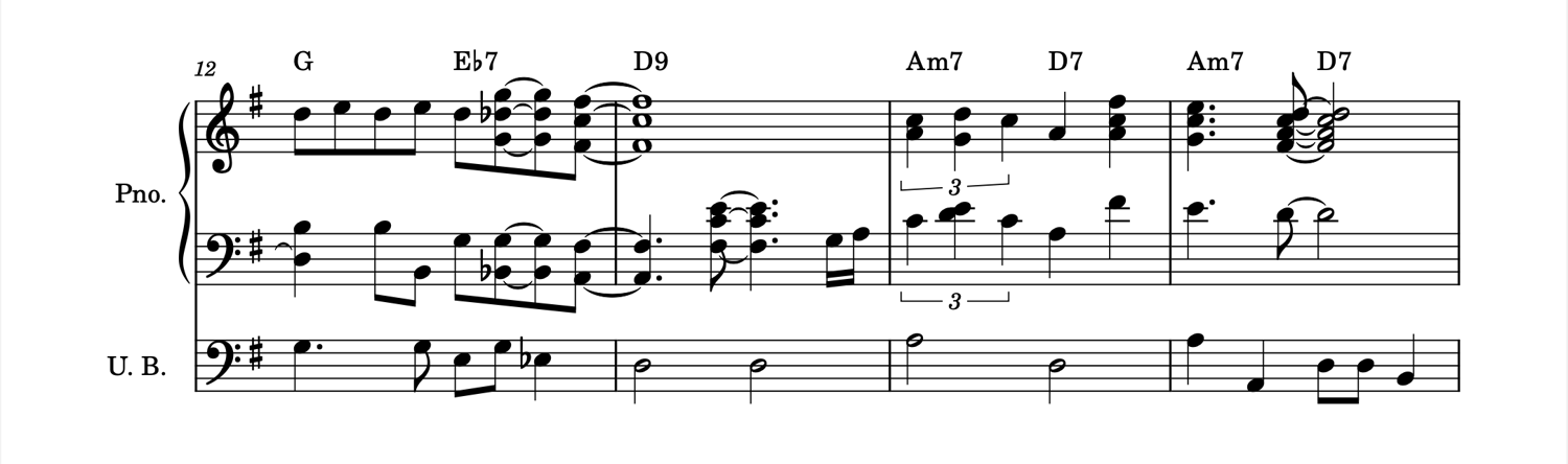 Includes a piano score, bass score, and a piano/bass score merged into one pdf file.