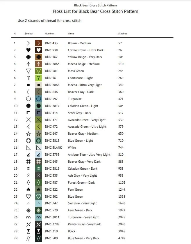 PDF pattern with clear symbols for easy stitching