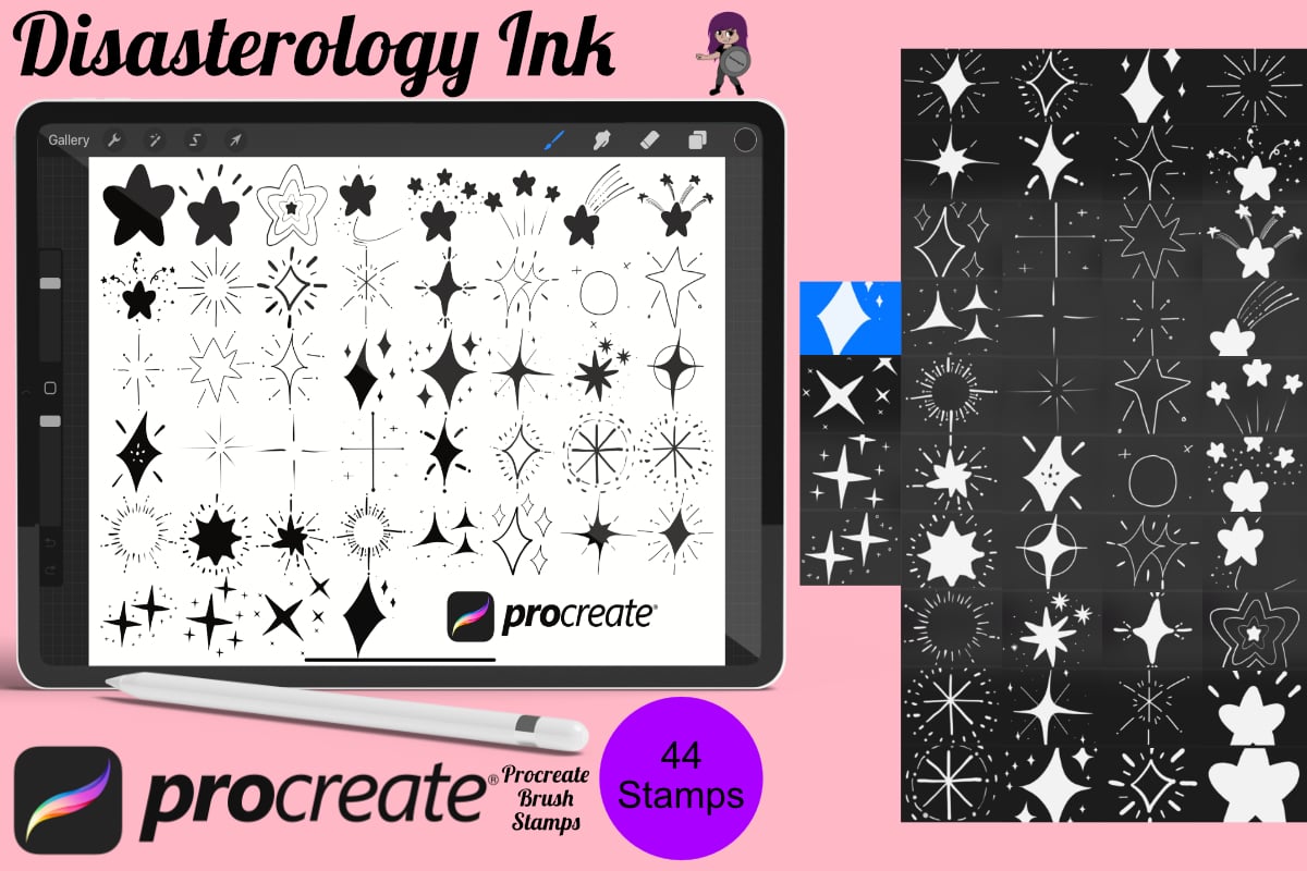 Sparkling Stars Set 6 Procreate Brush Stamps, 44 Star Stamps