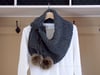 Notions: 3 split ring markers, stitch holder, tapestry needle, sewing needle, thread, three 1”-1 ¼” flat buttons (there are no button holes).