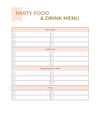 party menu planner, event planner, rsvp tracker, budget worksheet, ingredient list, hot food board, cold food board, dessert table, drinks menu, printable pdf