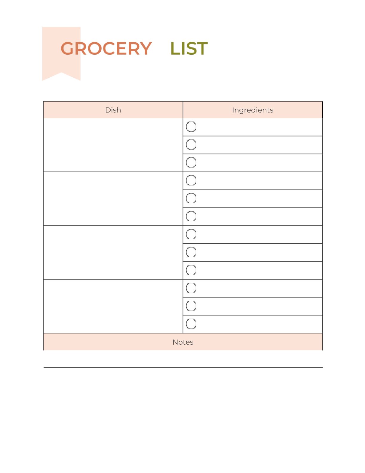 Can I list ingredients per dish? Yes—the Dish Planner page includes ingredient lines and notes.
