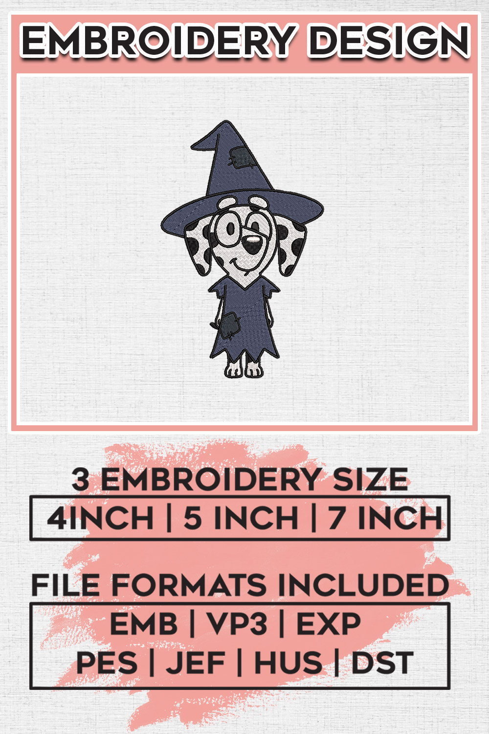 Halloween Chloe Bluey Witch Embroidery Designs, Halloween Embroidery Files, Spooky Season Embroidery, Bluey Character Machine Embroidery Design, Digital Download