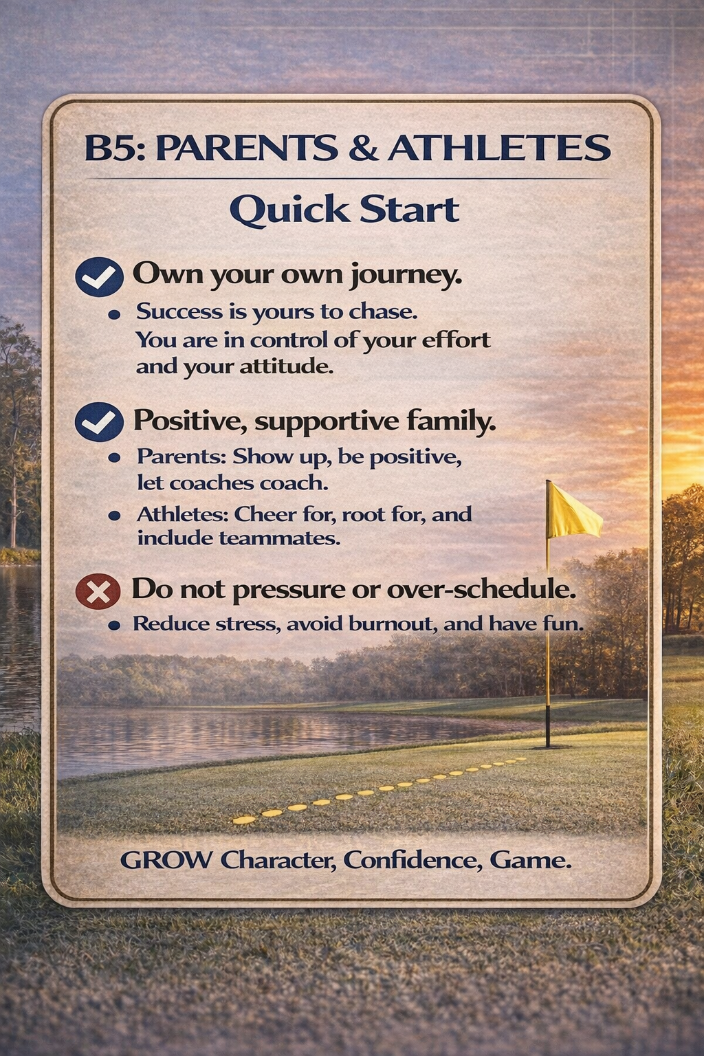 This kit gives parents and athletes simple tools to reduce pressure, communicate better, and build trust — without hovering, fixing, or making the game feel heavier than it needs to be.