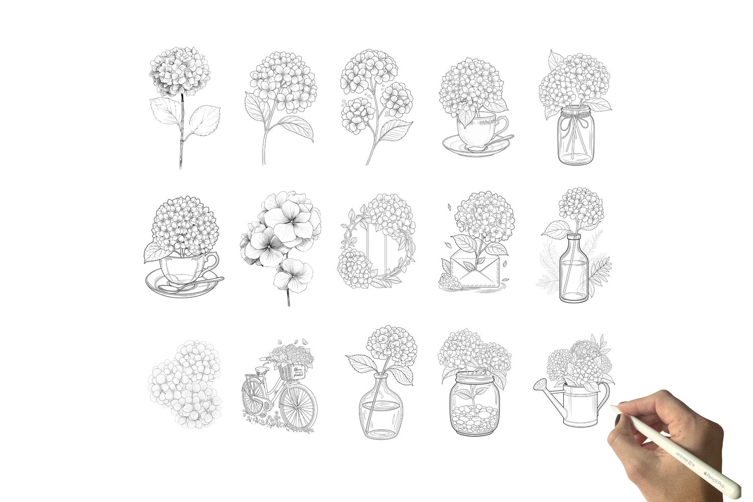 Create Whimsical Art with These Hydrangea Flower Templates & Digi Stamps