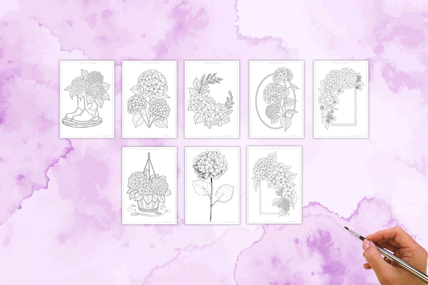 38 Hydrangea Watercolor Templates (PDF & PNGs)