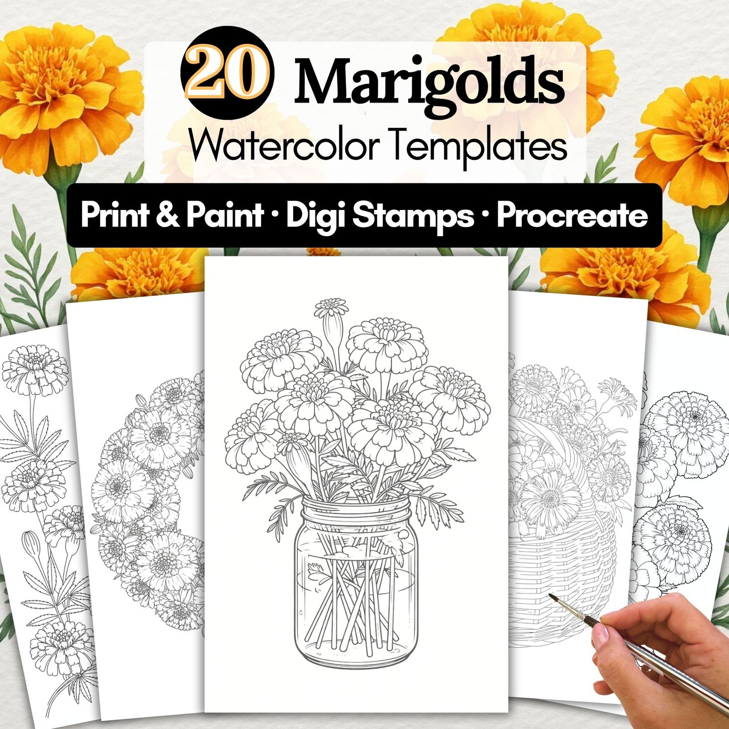 This crisp and elegant collection of Hydrangea Outline templates is ideal for watercolor painting, digital art, journaling, and more. Featuring both bold black outlines and subtle greyscale versions, you can choose whether to trace or paint directly onto the linework—perfect for both traditional and digital artists.