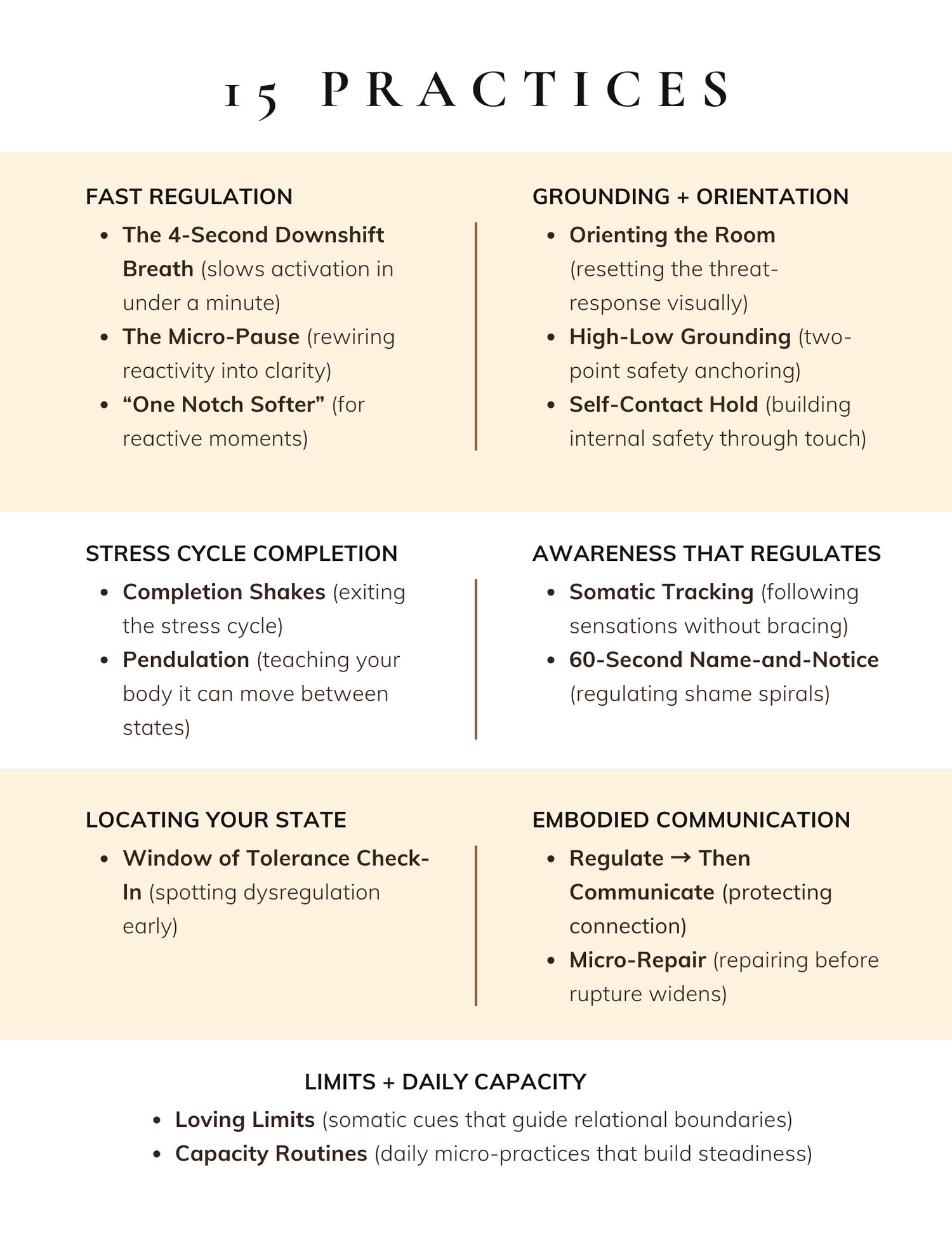 The Capacity Reset Guide gives you short, body-based practices you can use inside real moments—when regulation matters most.