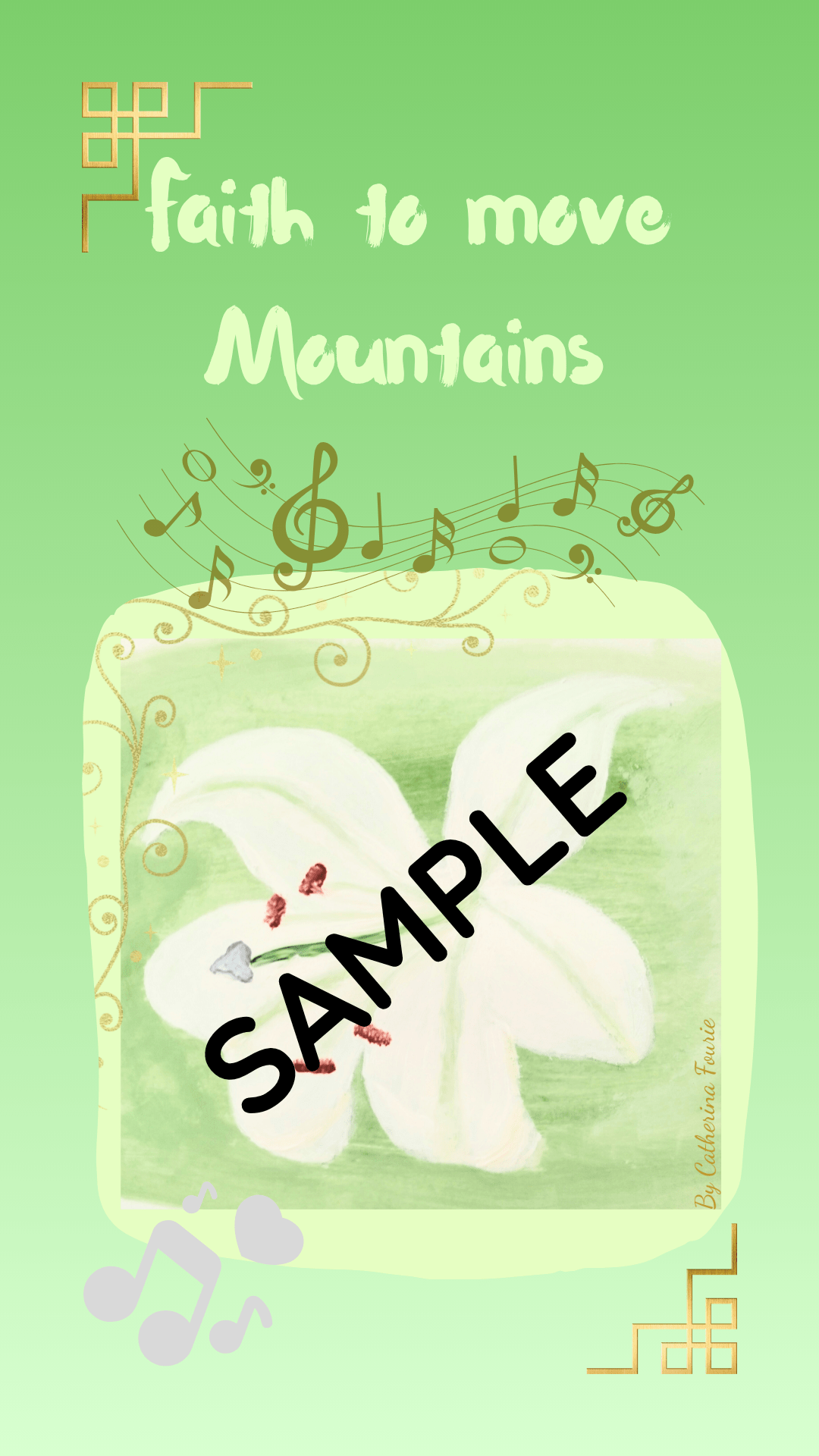 Be encouraged to grow in your faith and set time apart to spend time with the Lord every time you open your phone and see the Lily Collection wallpapers. The peaceful green tones and golden music notations will remind you of green pastures and the promises you have in Christ.