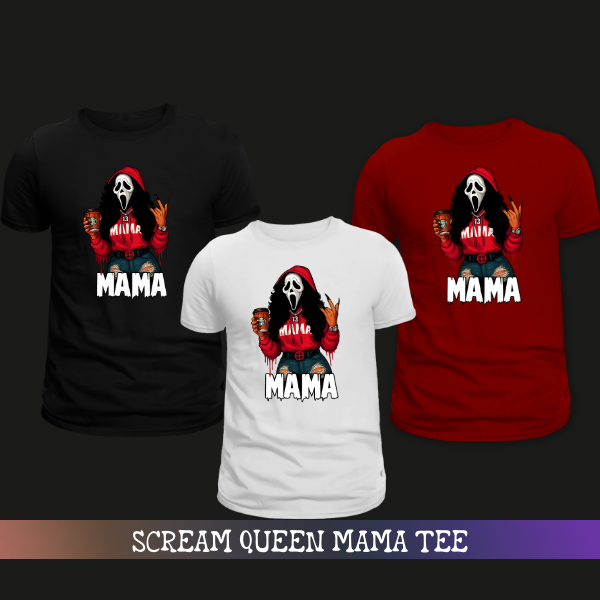 ✨ Rule spooky season with our bold “Scream Queen Mama Tee.” Featuring the iconic ghost mask with a mama twist, this shirt is perfect for horror fans who love to slay in style. Equal parts creepy and fierce, this tee brings queen energy to every scream.